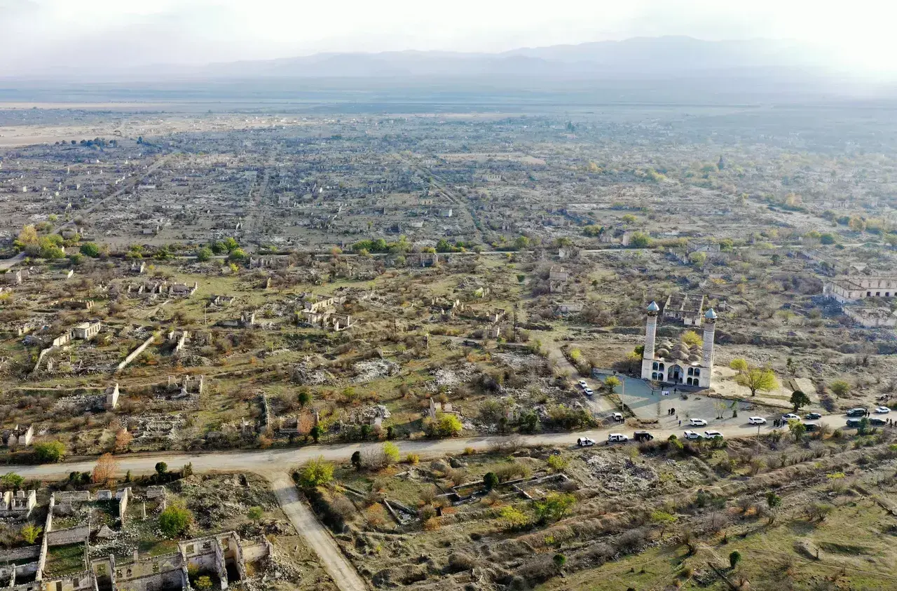 "Агдам Резиденс" - жилой город из шестиэтажных зданий, а вокруг руины прежнего Агдама