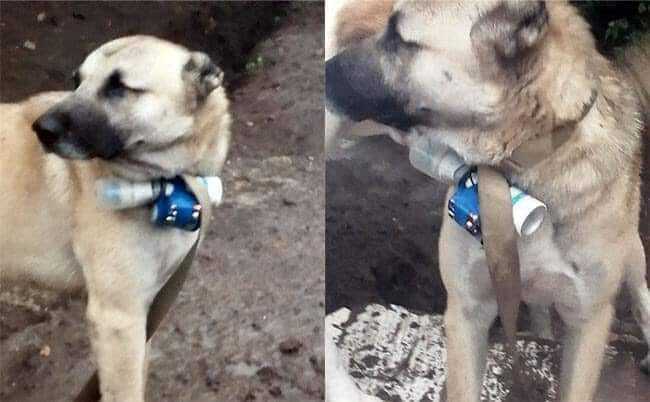 Сегодня наши солдаты в Ходжавендском районе Карабаха поймали эту собаку, заряженную взрывным устройством теми, кто еще остался на стороне, контролируемой русскими силами.
