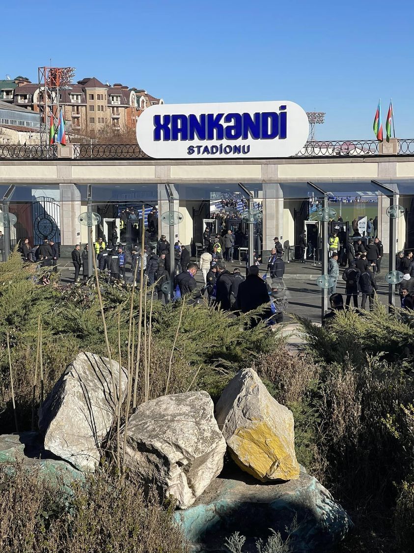 Исторический матч смотрели болельщики, приехавшие на автобусах из Баку, а также служащие в регионе военные, полиция, сотрудники открывшихся в Карабахе государственных ведомств. На открытии прозвучал гимн Азербайджана. Выступил президент И.Алиев, ударивший первым по мячу. Он сказал, что азербайджанцы вернулись сюда навечно. Я понимаю, что все в мире течет и меняется, и знаю о чем мечтают разрушители стадионов, но как ни всматриваюсь в будущее не вижу, почему слова Алиева не пророческие.