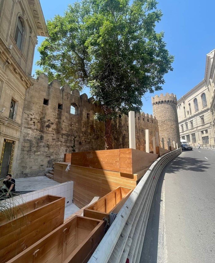 Перейдем к нашим, городским баранам. В Баку, впритык к крепостной стене 12-века активно возводятся деревянные строения ресторана.  В сетях недовольные активисты публикуют гневные мнения, но власть не колышется, так как в этом месте, в центре туристической активности, каждый ресторанный метр приносит владельцу и крышующему чиновнику брусок чистого золота.  Против такой прибыли ни один закон и историческая ценность  - ничто.