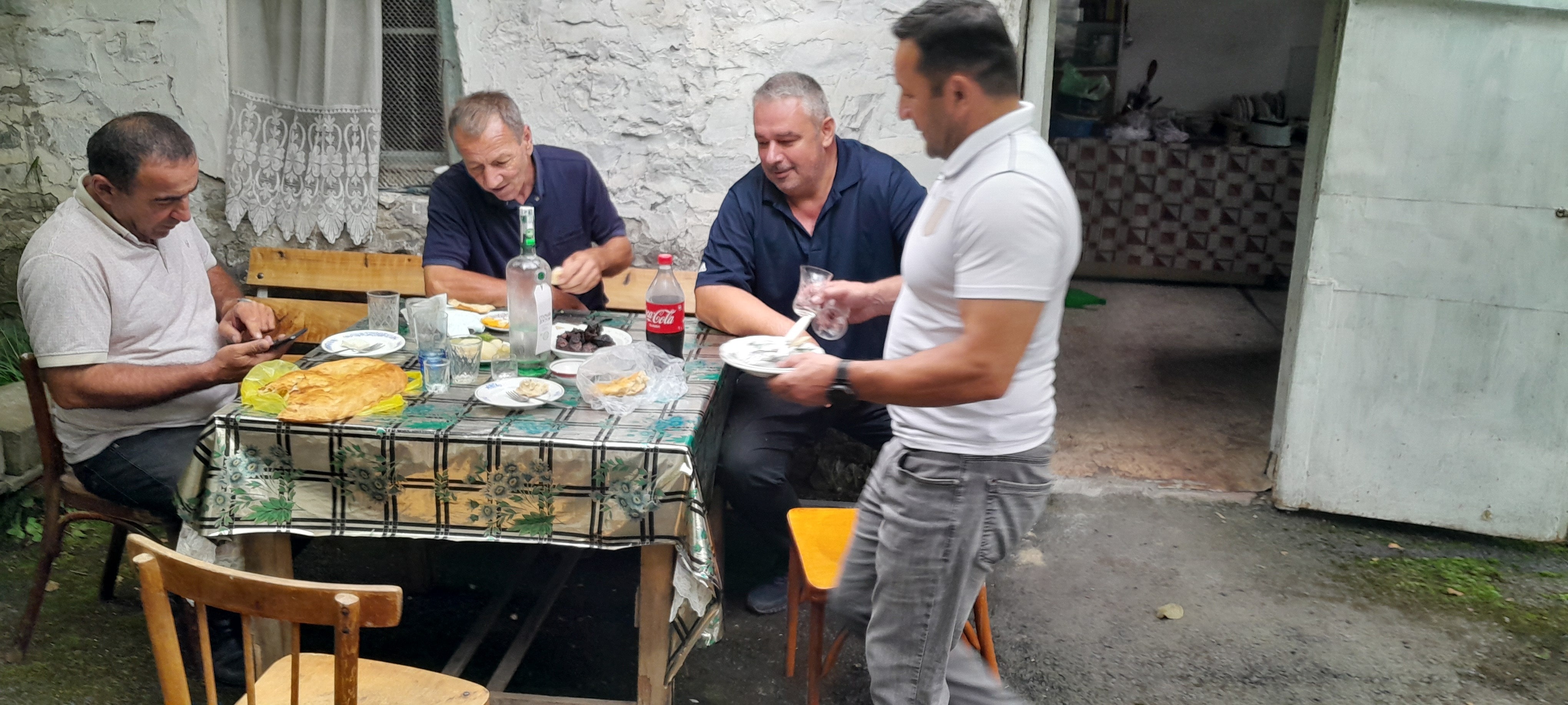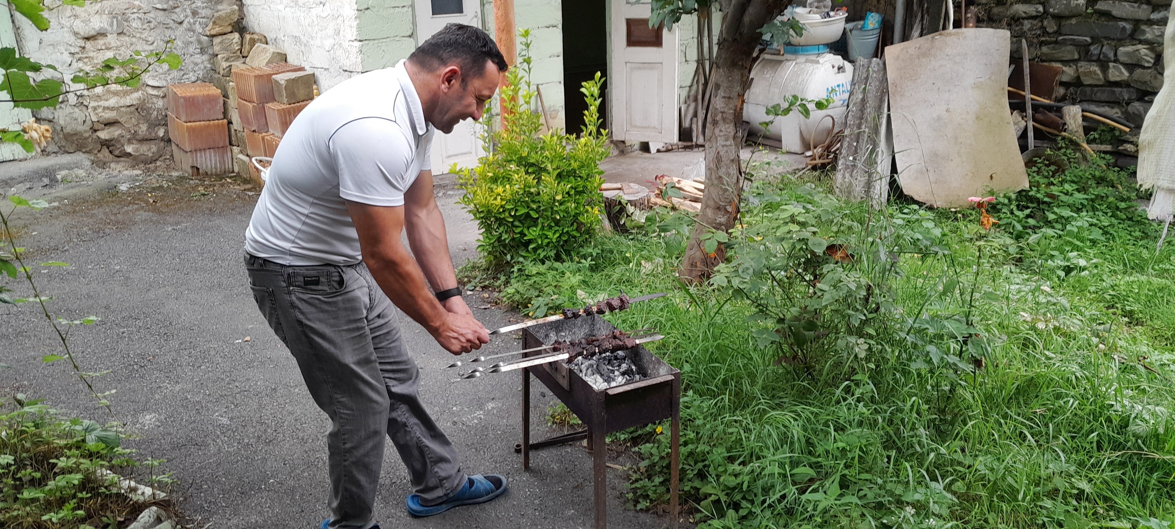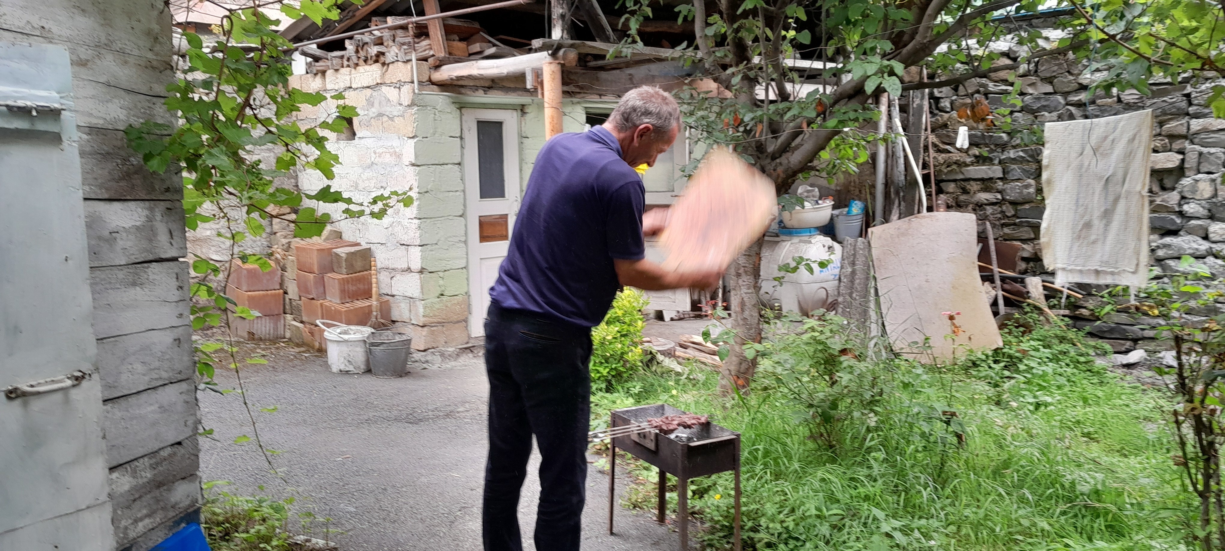 В первую половину дня экспромтом, каждый что-нибудь принес, мы - четверо мужчин организовали шашлычок из печени. Я написал шашлыЧОК не как русские, у которых часто не к месту все именуются в ласкательно-уничижительном склонении, а потому, что шашлык был маленький, на 4 коротких шиша-шомпола.