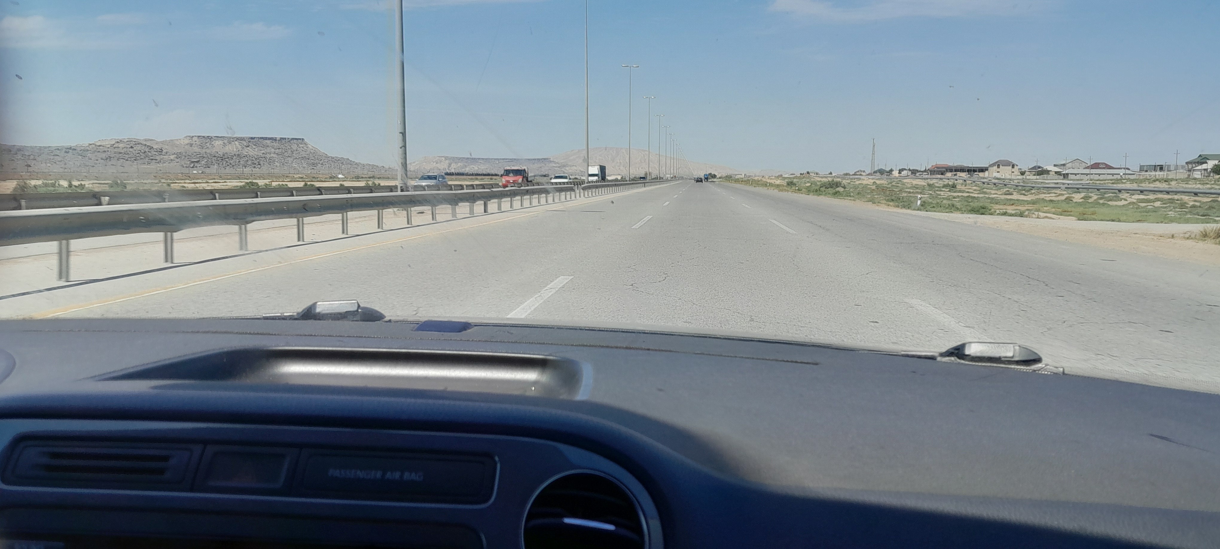 Встали в шесть утра, за два часа завтрак-консервация дома и в 8 выехали в Гах, оттуда через Евлах и Кюрдамир в Баку. Решил оставить в сторону Шамахинскую горную дорогу так как за шесть часов виляния по серпантинам сильно устаю, постоянно руля в напряжении с ногой на тормозе. А через Кюрдамюр, который сладкое вино,  можно мчаться с 125 км в час на автопилоте. Тут я соврал так как разрешенная максималка в 110 км в час часто сменяется на 90 и на 60 поэтому автопилот неуместен.