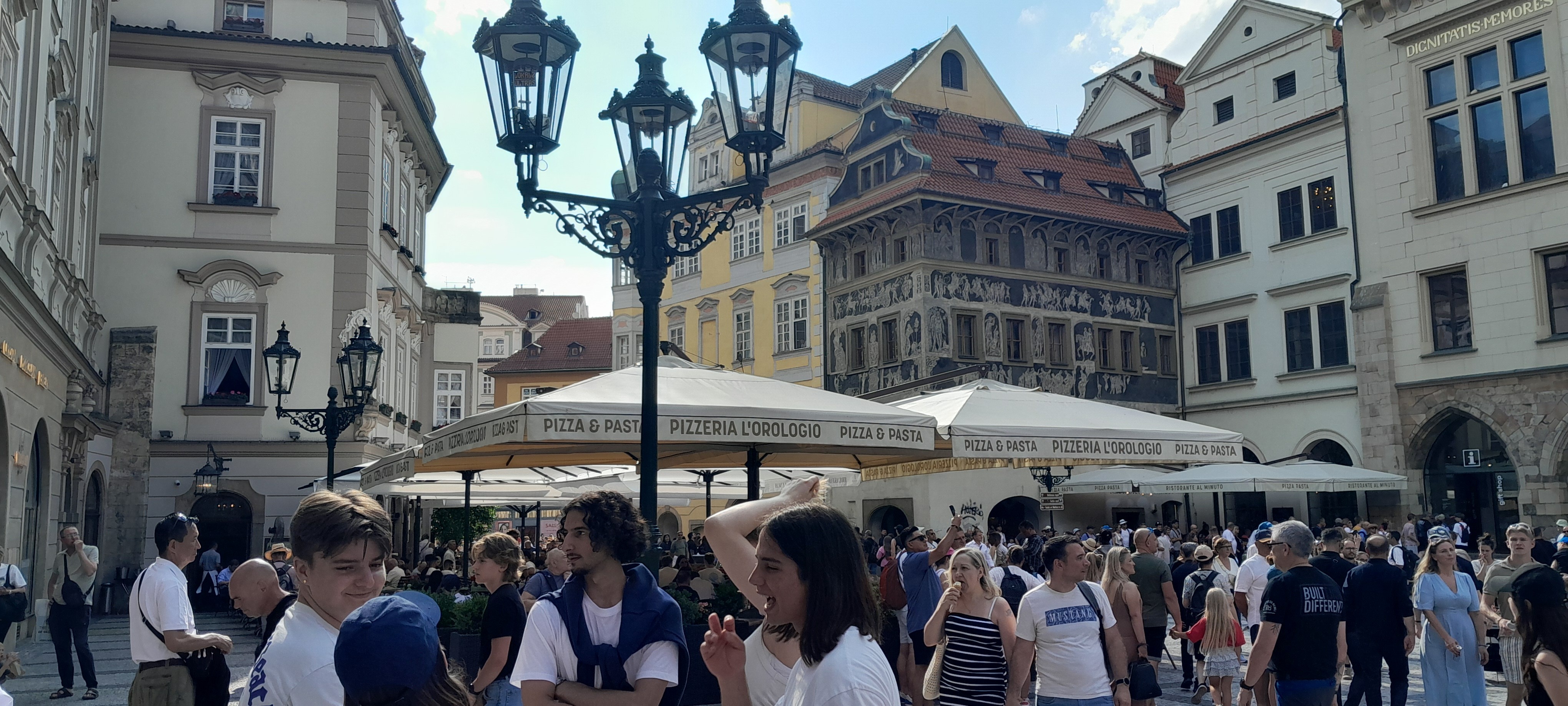 В Праге улица частично говорит на русском, иногда, редко на украинском. Казахские туристы все русскоязычные. Есть, конечно, на туристических местах чехи, много китайцев, немцев. Остальные общаются на английском. Владелец сувенирной лавки - босниец, узнав у меня что я из Азербайджана, сразу перешел на русский язык и сообщил мне о том, что у нас столица Баку, много нефти и газа, а в конце к моим покупкам добавил магнитку в подарок.