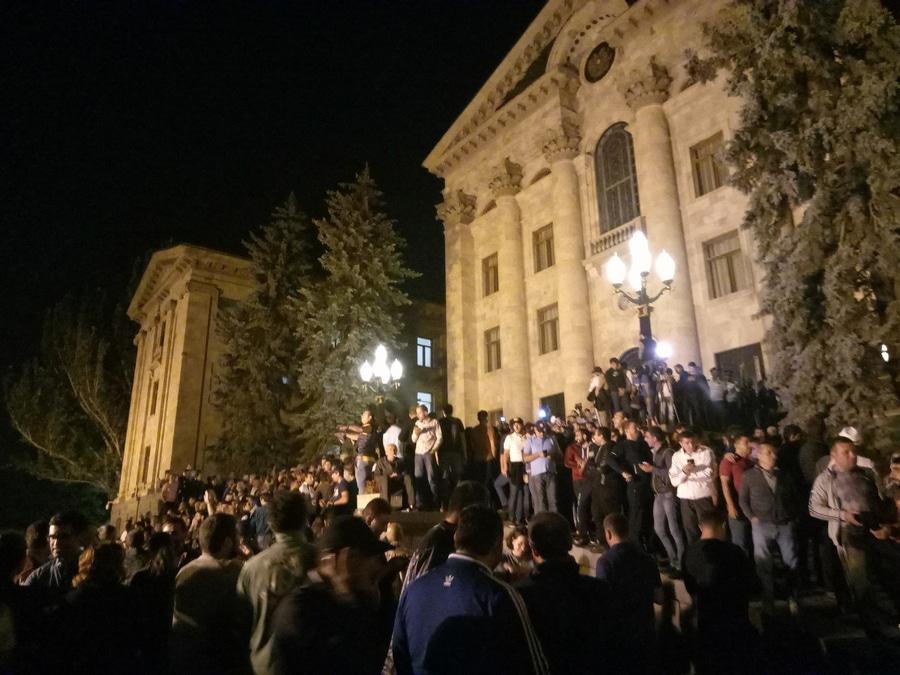Появились постеры «HHK heracir», т.е. «РПА уходи», люди облепили двор парламента, в особенности со стороны входа и на лестницах. Сначала там продолжался митинг Пашиняна, но спустя некоторое время он зашел в парламент. Многие фотографировались, делали селфи. Самым обсуждаемым вопросом было, что «мы вошли во двор парламента», иногда добавляя, что это «впервые после 1996 года». Кроме того, даже «голубые воротнички» и безработные сидели во дворе и всерьез обсуждали вопросы конституционного порядка, регламента Национального собрания, внутриполитическую ситуацию, что выглядело вновь