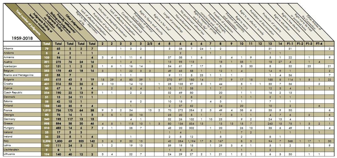В своем заявлении он говорит о vetting-е, то есть по сути хочет внедрить институт комиссаров, прикрепить их к судьям и визировать их правовые решения. Учитывая отсутствие каких бы то ни было квалификаций о том, что в прошлом массово нарушались права человека любыми международными структурами, обоснование под требованием к переходному правосудию ничтожно. Но поскольку как-то надо обосновать, он говорит о решениях ЕСПЧ, никак не подтверждая слова. Но по поводу голословных утверждений премьер-министра, приведу статистику самого ЕСПЧ.