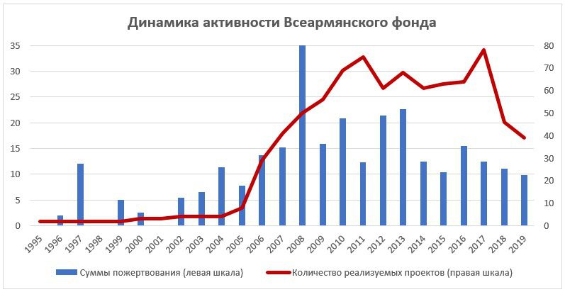 Во-первых, убежденность в том, что средства «будут разворованы» со стороны общества как в Армении, так и в диаспоре, сильно переоценивается. Напротив, фонд и реализуемые им проекты, широко рекламировались по телевидению и, соответственно, общество имело примерную картину, на что пойдут пожертвования.