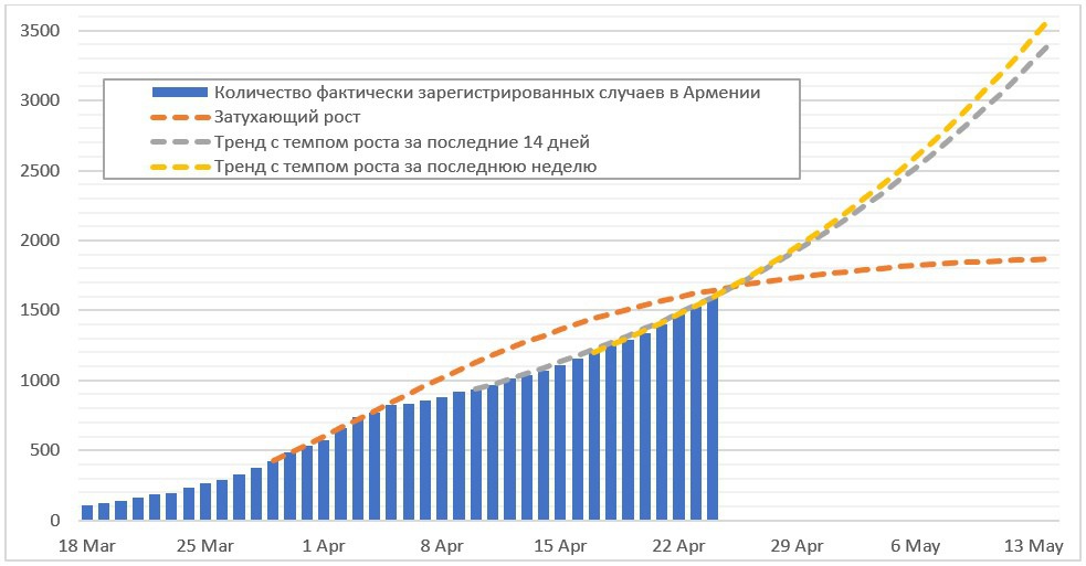График 4. Темпы роста инфицирования в Армении и их экстраполяция