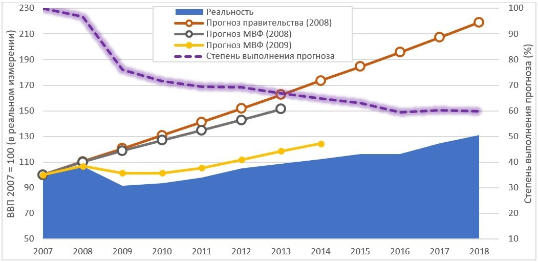 Таблица 1. Прогноз 2008 года по росту ВВП и реальность
