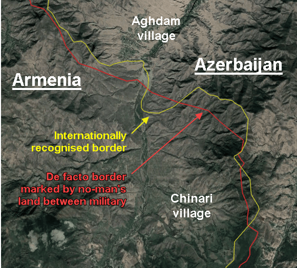 Конкретно – фрагмент границы именно в этом участке – между селами Агдам и Чинари. Источник – Nagorno Karabakh Observer.