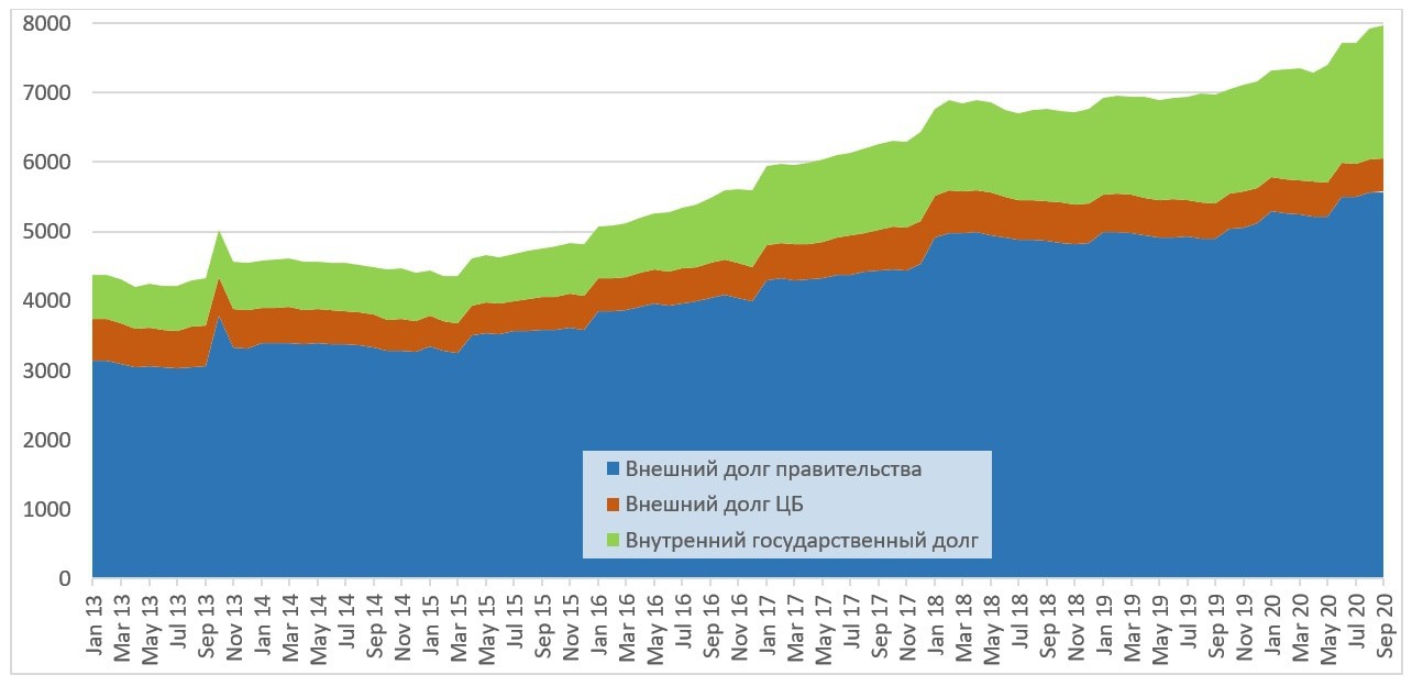 Тот рост, который мы видим в последние месяцы, заметен, но не катастрофичен. Также стоит отметить, что в первую очередь он происходит за счет внутреннего долга, который с начала кризиса вырос более чем на 20%.
