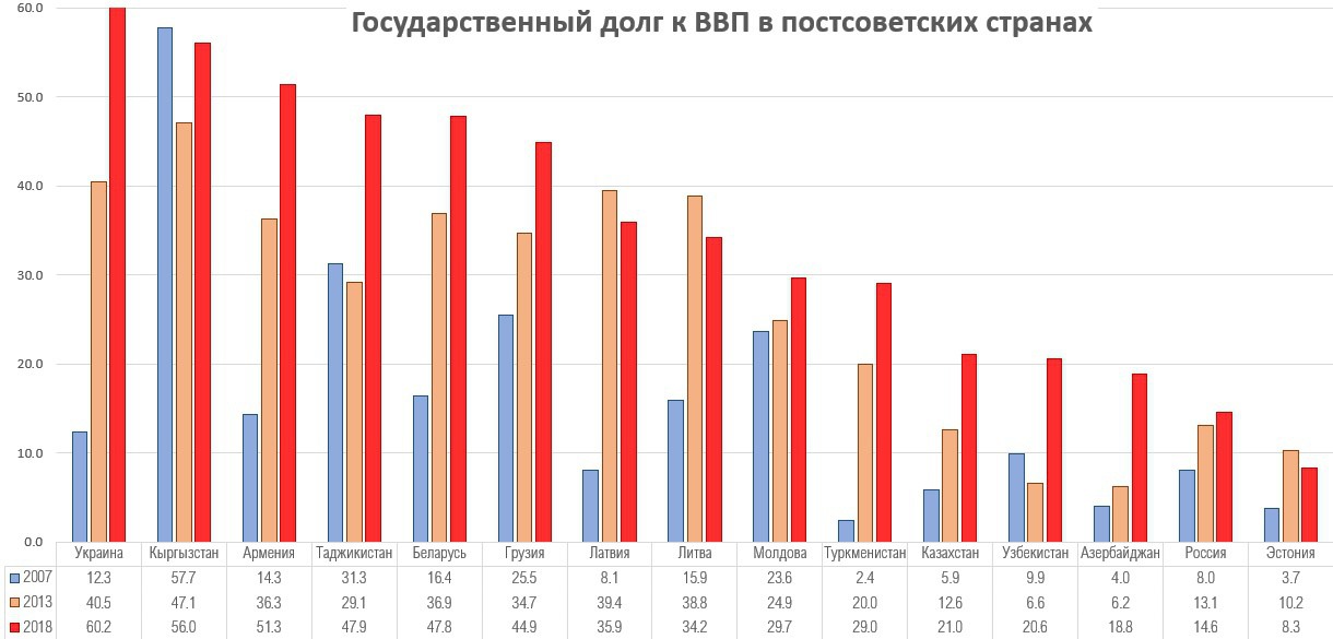 График 4. Сравнение долговой нагрузки стран бывшего СССР