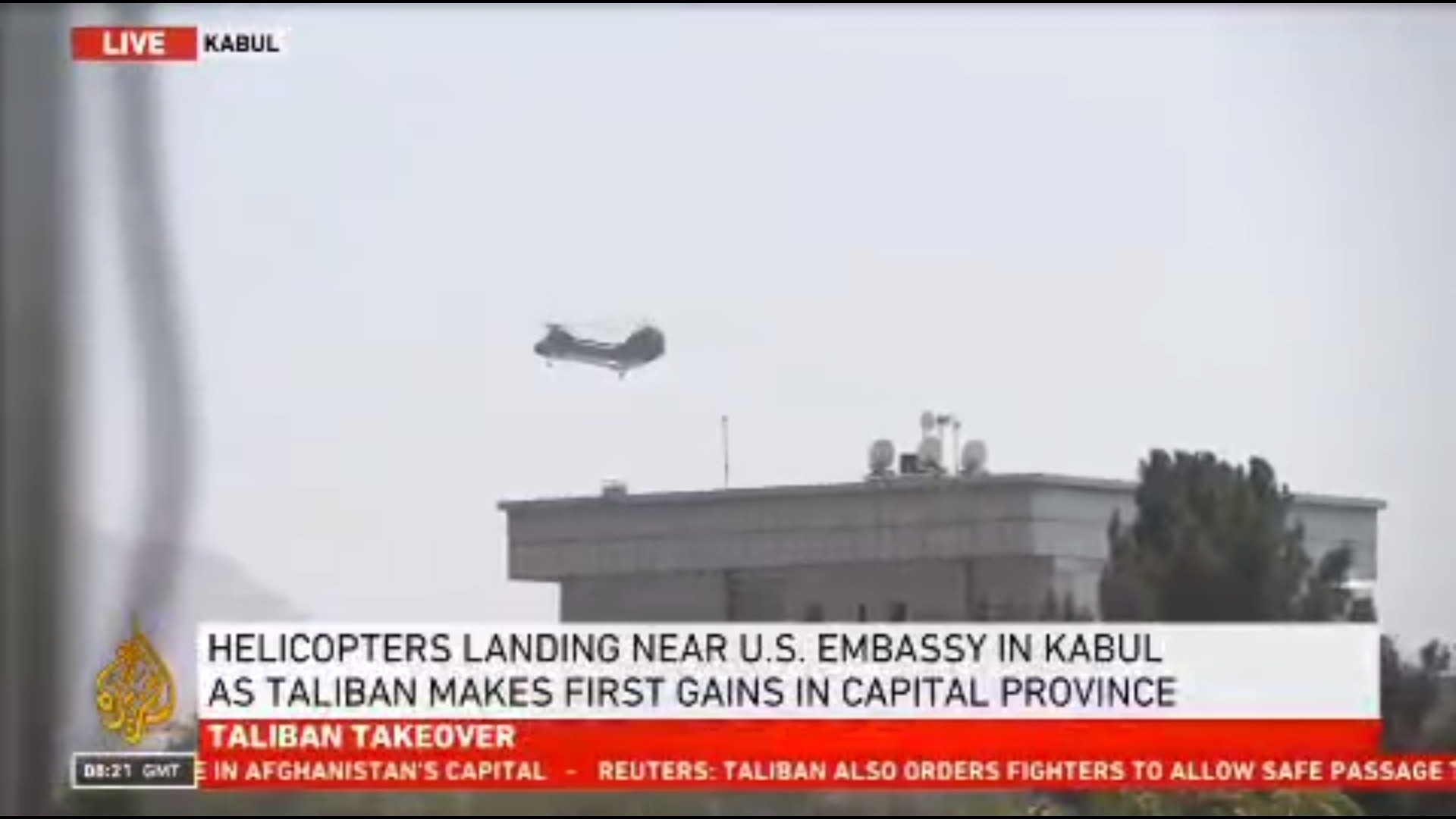 15-16 августа, талибы заняли американскую базу Баграм и топчут флаг. В том числе во избежание повторения, во время эвакуации посольства, американцы вывозят все вещи, содержащие какую-то символику США.