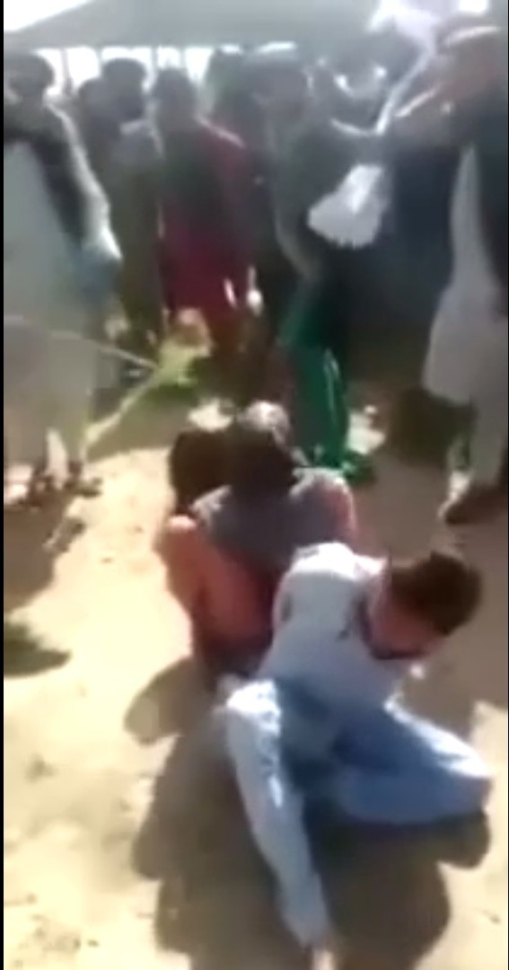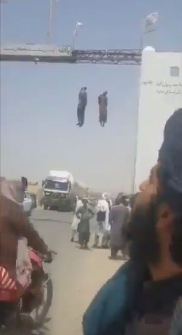 Есть и другие характерные кадры. Например, это фрагмент из видео, где талибы за какую-то провинность избивают плетьми двух наказуемых: