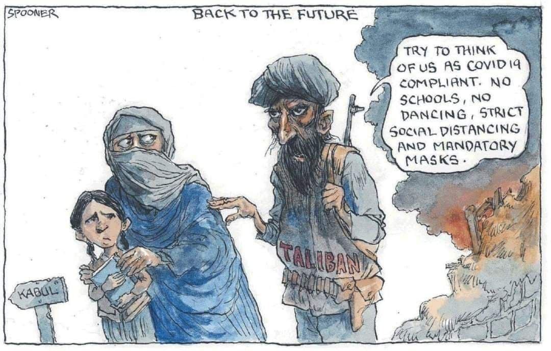 Поэтому ожидания от прихода Талибана в Кабул и другие города были крайне скептические. Анимационных карикатур и высказываний на тему того, что в Афганистан пришло средневековье, было немало. Их вы можете увидеть в том числе и в этом наборе у полковника Кассада, приведу лишь пример: