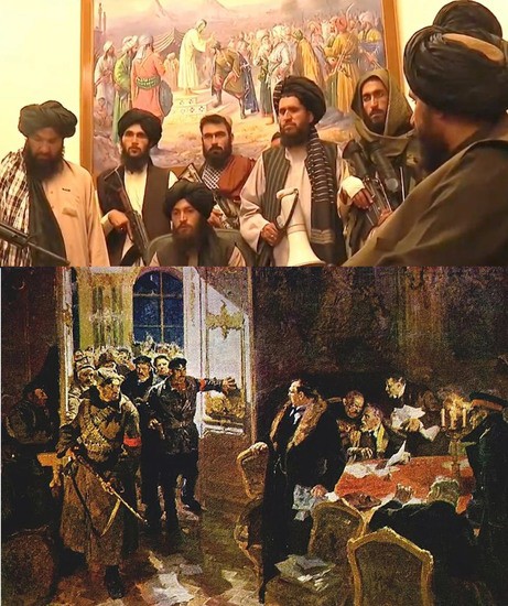 Еще один кадр - талибы, занявшие президентский дворец 15 августа, со всей своей эстетикой демонстрируют, что они тут власть.
