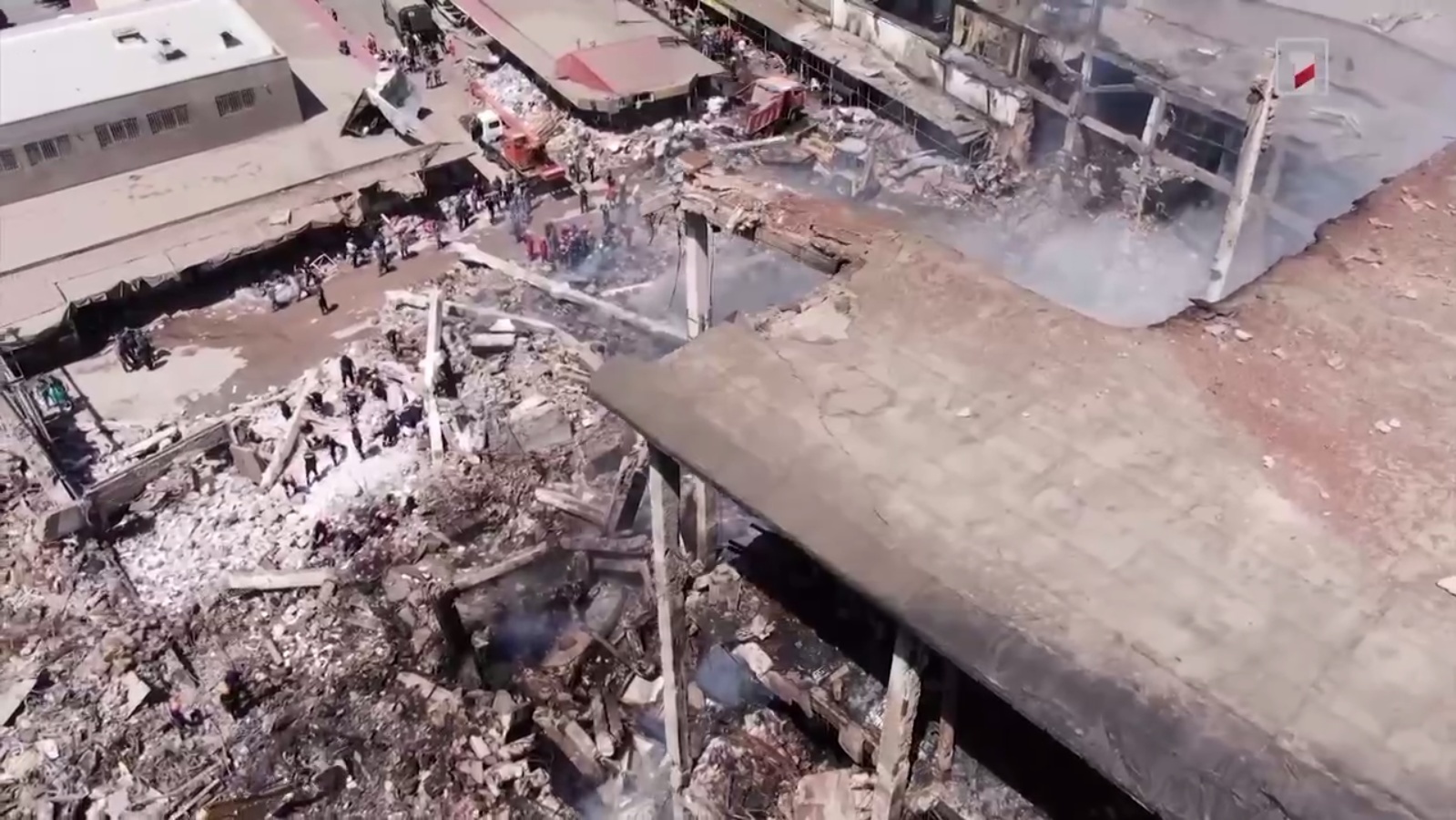Масштаб разрушений. Съемка с квадрокоптера, сделанная 15 августа, скриншот из видео, показанного по центральному телевидению