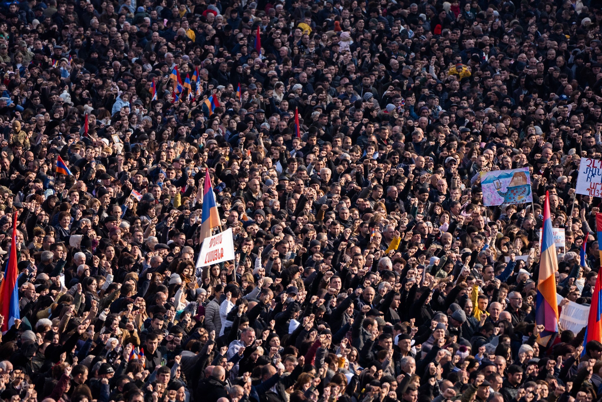 Вчерашний митинг (25 декабря 2022 года) был тоже очень массовым, но число участников было несколько меньше, судя по фотографиям, снятым с высоты, так что была ниже плотность и границы толпы. Это объяснимо, так как из-за нехватки топлива движение по республике затруднено и многие арцахцы из районов не смогли приехать в Степанакерт для участия в акции. Тем не менее, по фотографиям акция была более чем впечатляющая с вероятным числом участников от 35 до 38 тысяч человек. Основным требованием было открыть дорогу жизни немедленно и безо всяких предусловий.