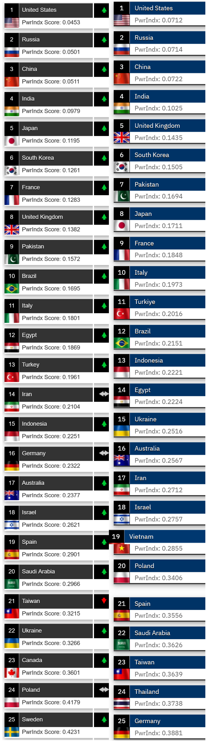 Сравнение рейтингов - ниже (слева 2022, составленный по данным за 2021 год, справа - 2023, по данным за 2022 соответственно). Топ - 15 на картинке ниже, топ-25 можно открыть по ссылке.