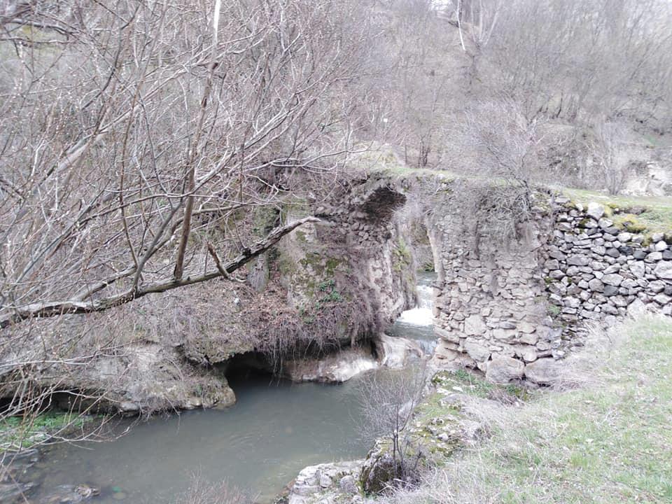 Дальше через средневековый мост заходим в лес. Мы называем это ущелье "hЮнот". Там много кизиловых деревьев, кизил по нашему hюн. Снега тают, река сейчас полноводна.