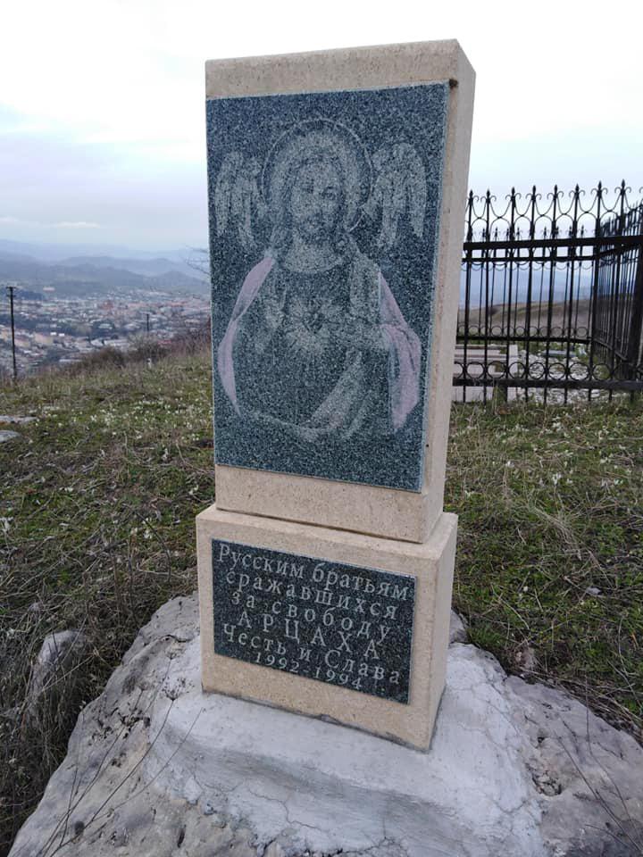 Постояли, полюбовались и поднялись пешком в Шуши. Мы обратно вышли к селу Мхитарашен. Приехало такси и отвезло нас в Шуши, где я оставил свою машину. По дороге остановились у холма, где стоят камни в честь погибших в нашей войне, отца и сына Мотричей.