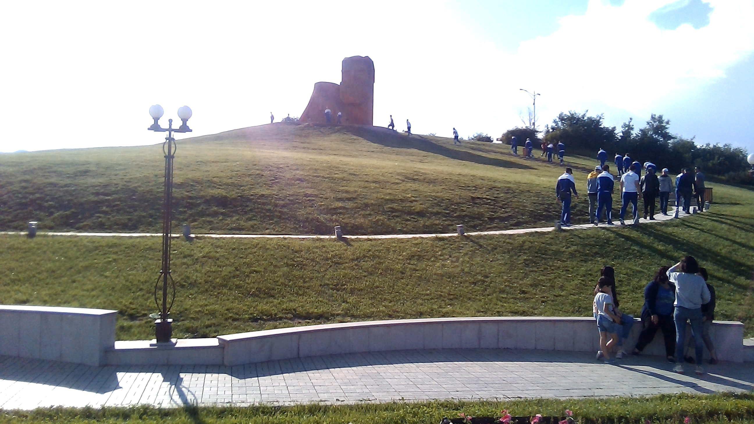 Автобус с командой из Южной Осетии, я встретил около нашего знаменитого памятника " Дед да баба".