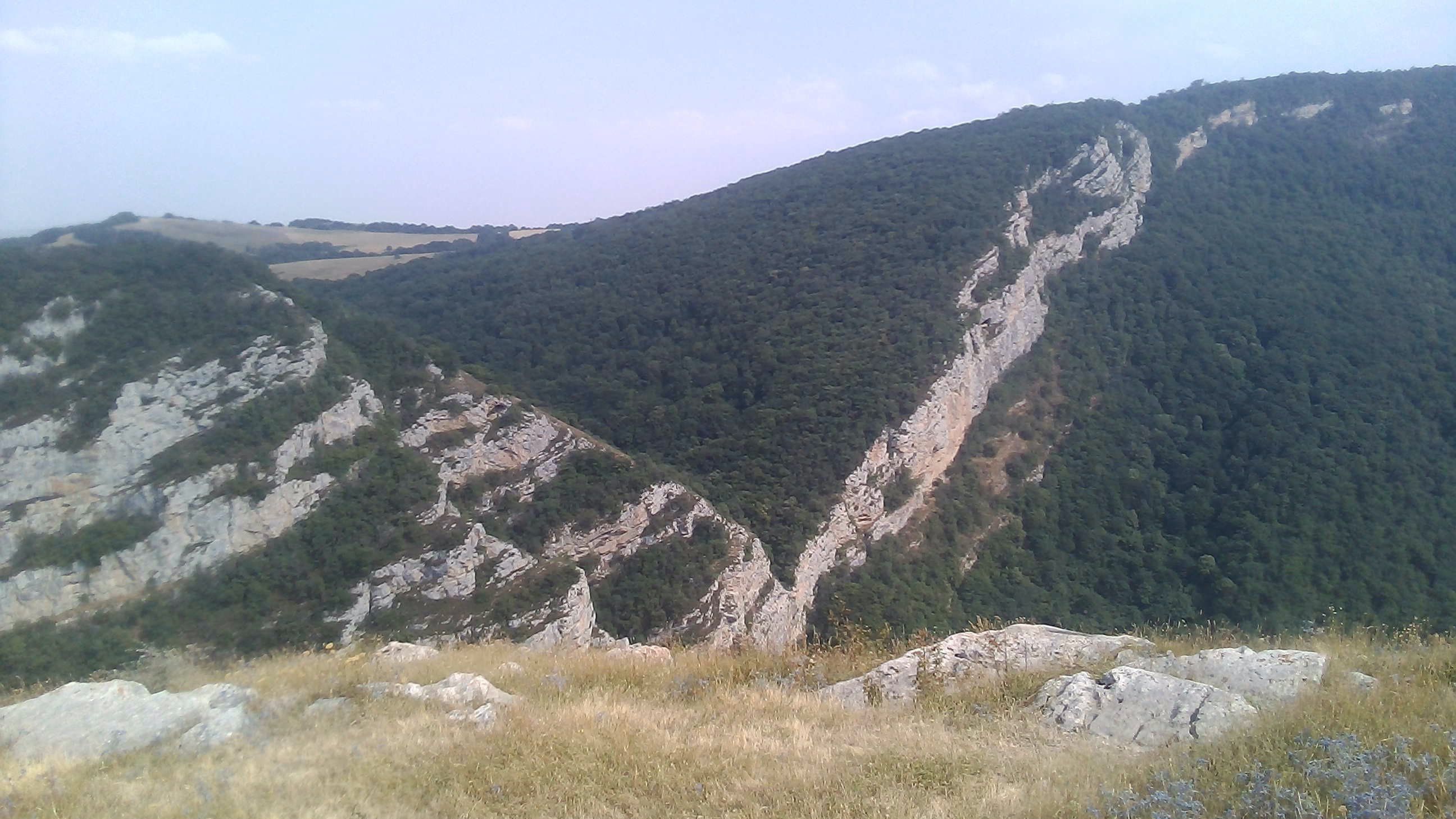 Напротив "Дждрдюза" тоже горы, если всмотреться, то контуры скалы напоминают крылья, в форме английской буквы V.