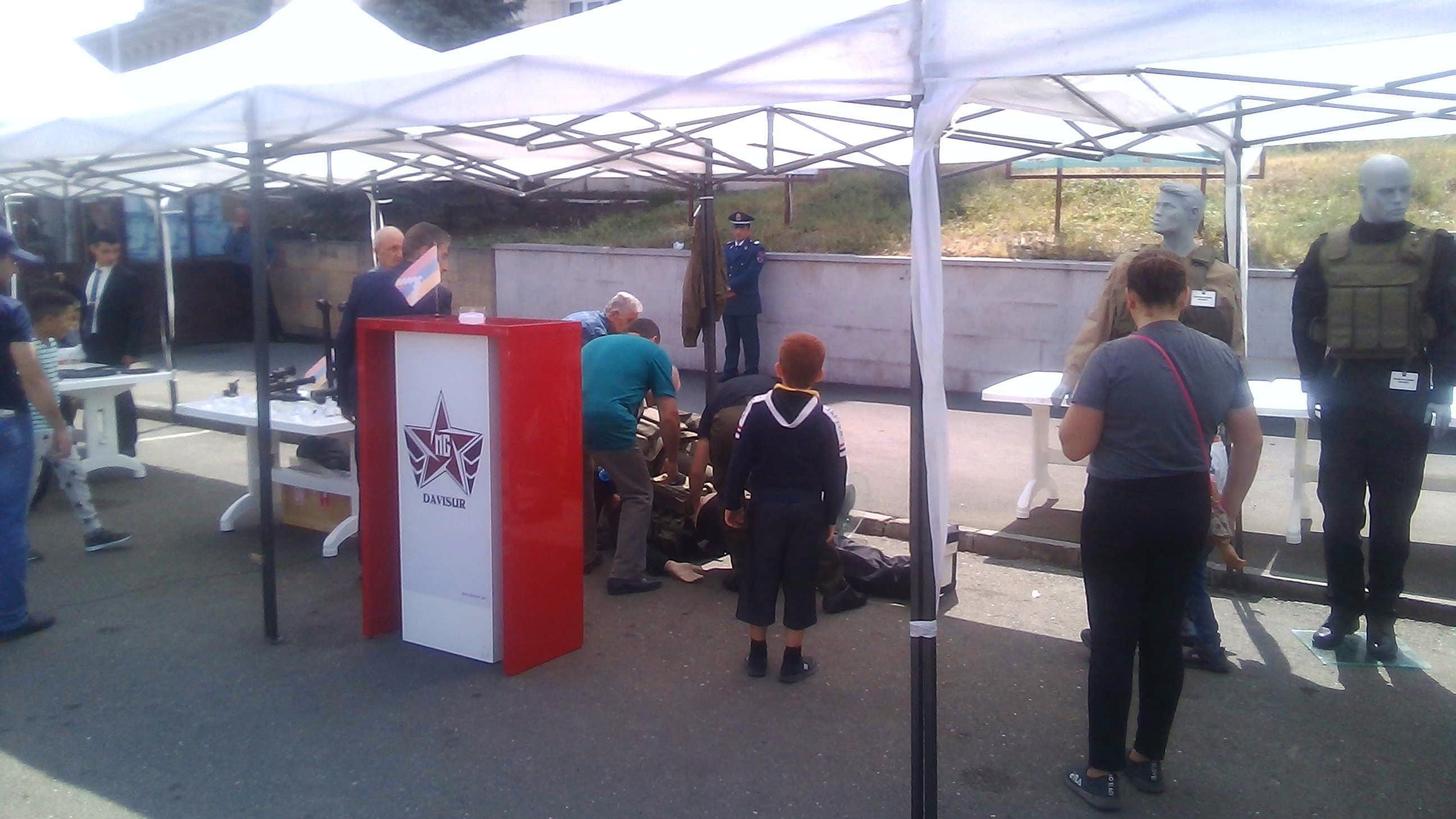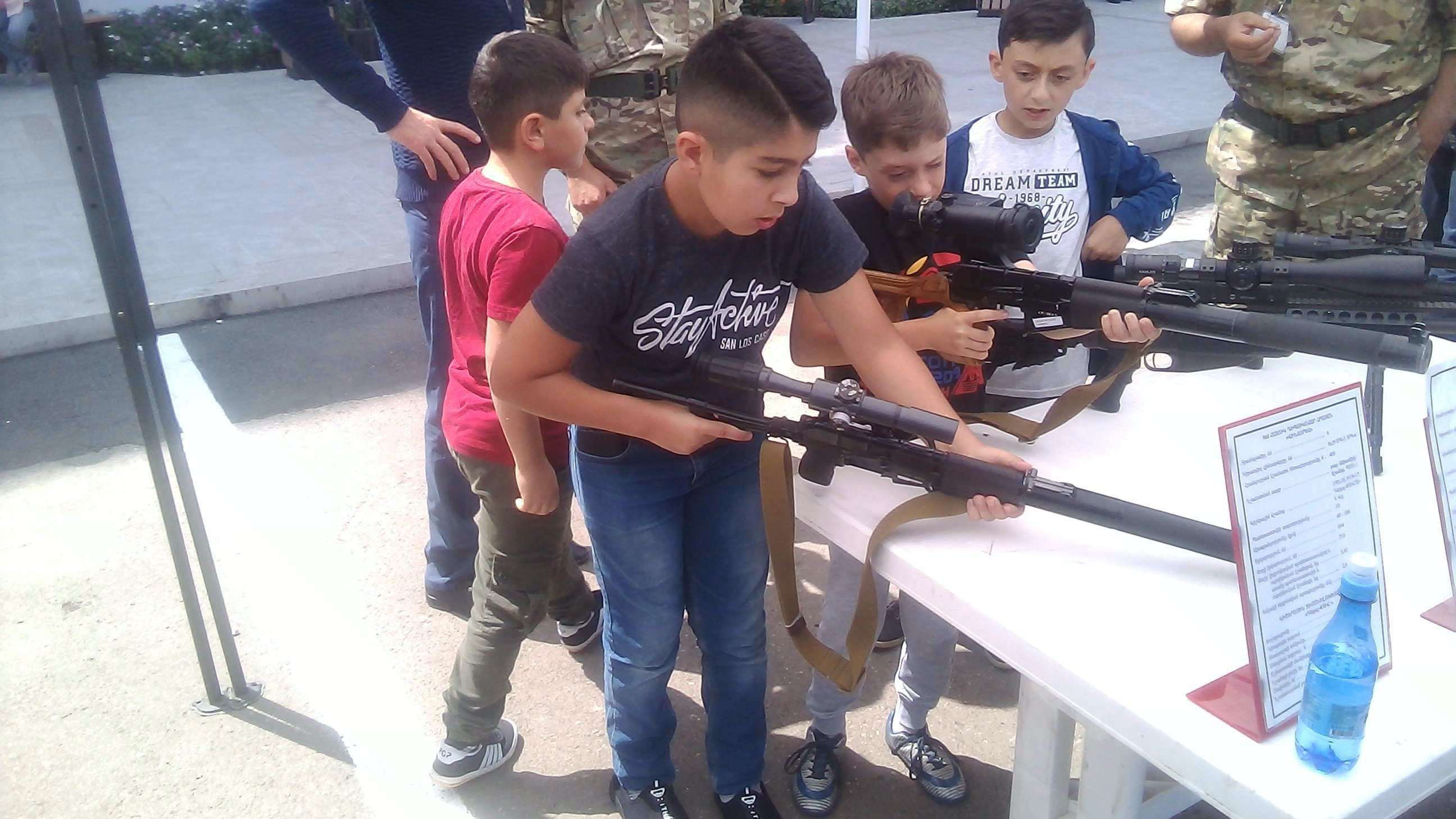 Выставка оружия на площади, рядом с центральным офисом " Арцахбанка", предложил раза два пальнуть по банку, все замечтались и заулыбались