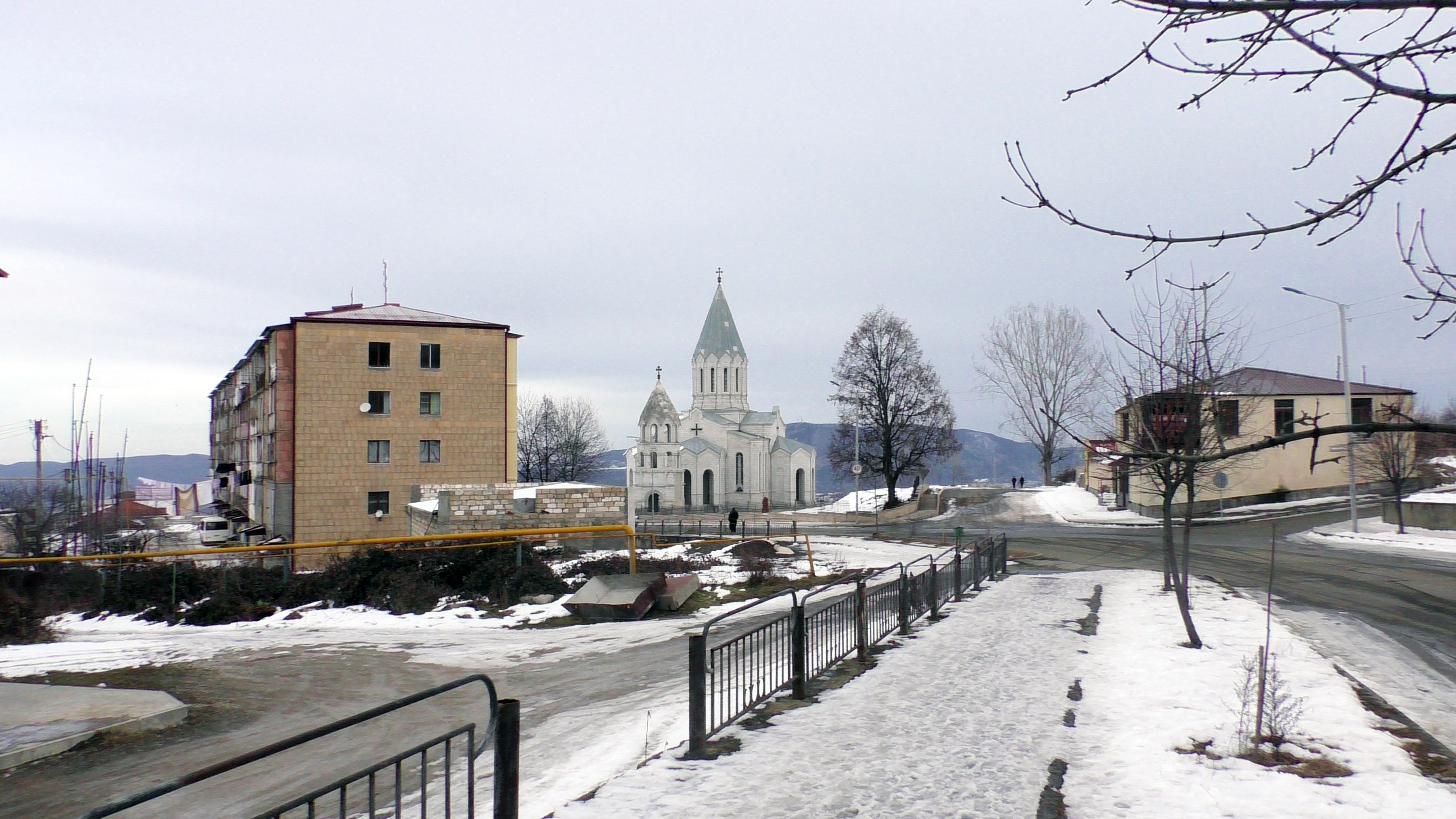 Центральная улица города Шуши, справа колокольня церкви Казанчецоц