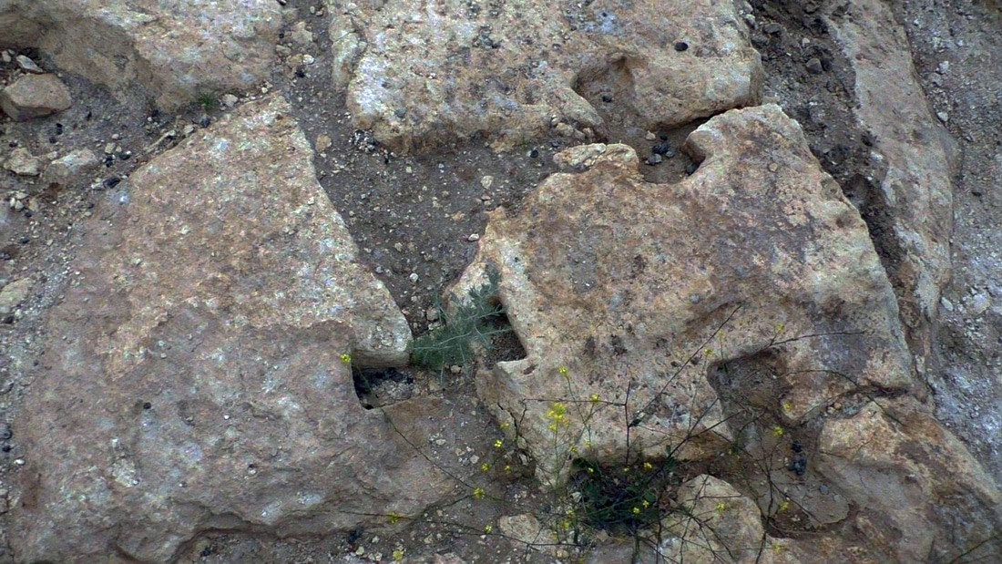 Поднявшись чуть выше места раскопок, нашел скалу, которую распиливали на камни для крепости. Чем резали скалы, я не знаю. Сделал для себя еще одно открытие, церковь Ванкасар в свое время находилась в городе Тигранакерте, возможно, там была одна из угловых башен. Церковь находится на одной линии с крепостной стеной и располагается на той же горе.