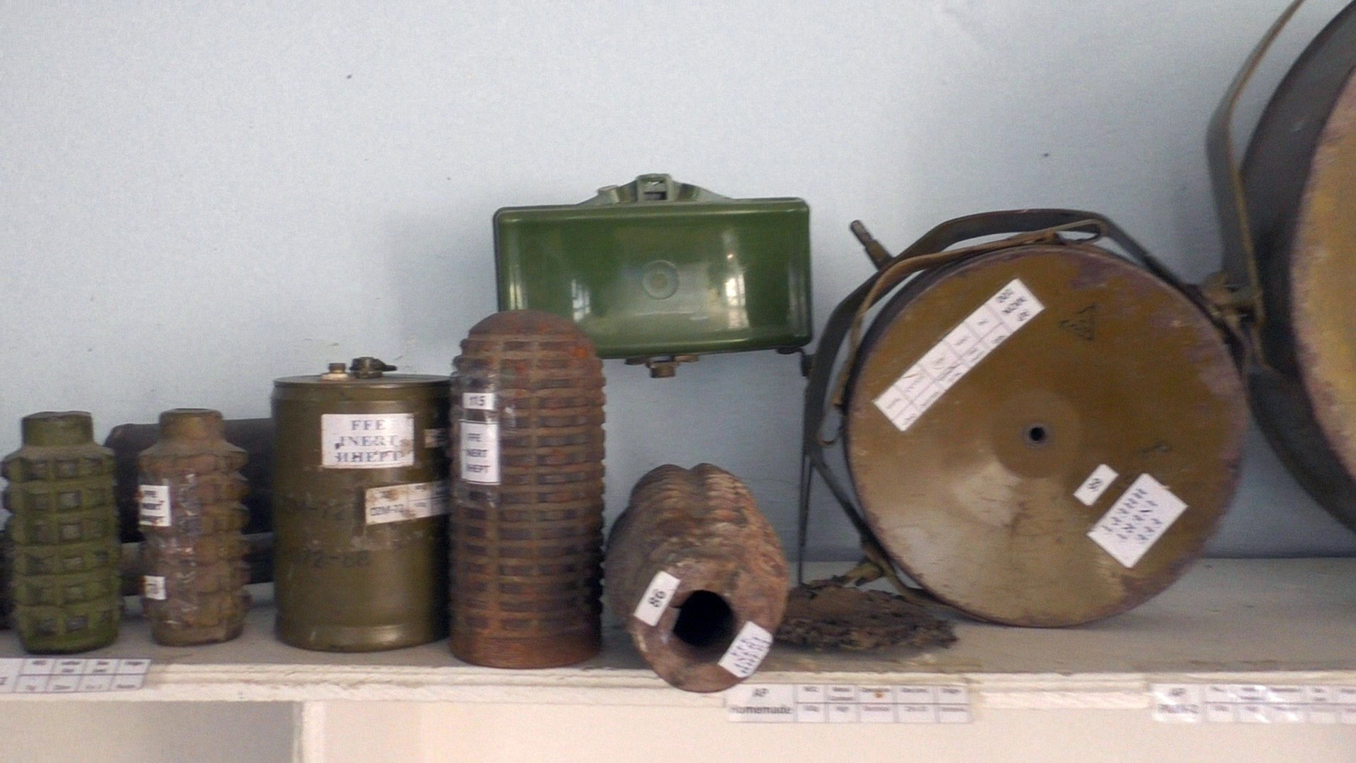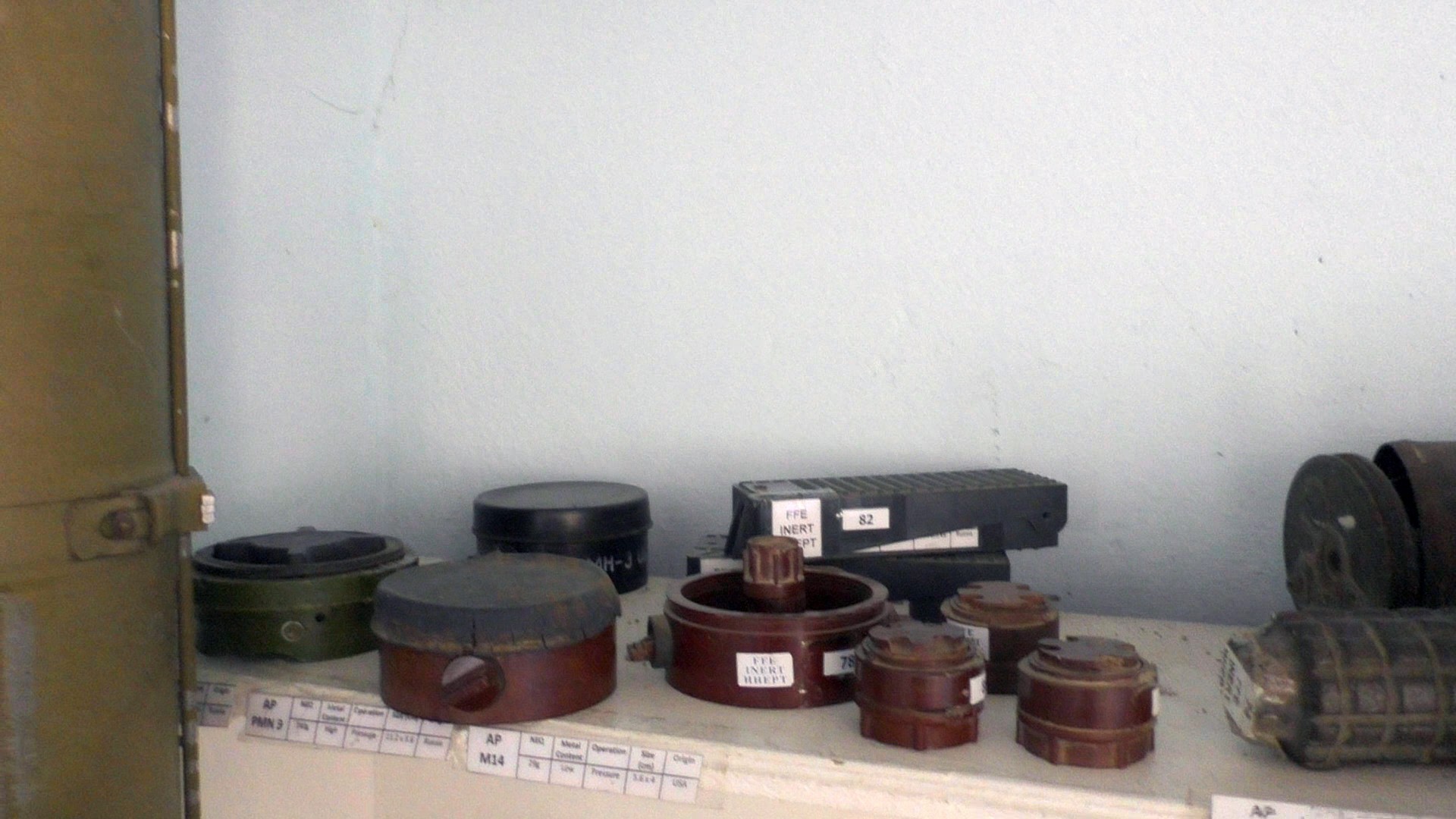Недавно заходил к ним в офис. Менеджер программы, Роб, несмотря на всю свою занятость, уделил мне несколько минут и показал классную комнату, в которой собраны образцы разных боеприпасов. Их нашли на минных полях Арцаха и обезвредили наши деминеры. Роб любезно согласился на то, что бы я сфотографировал эти когда-то смертоносные экспонаты. Спасибо !