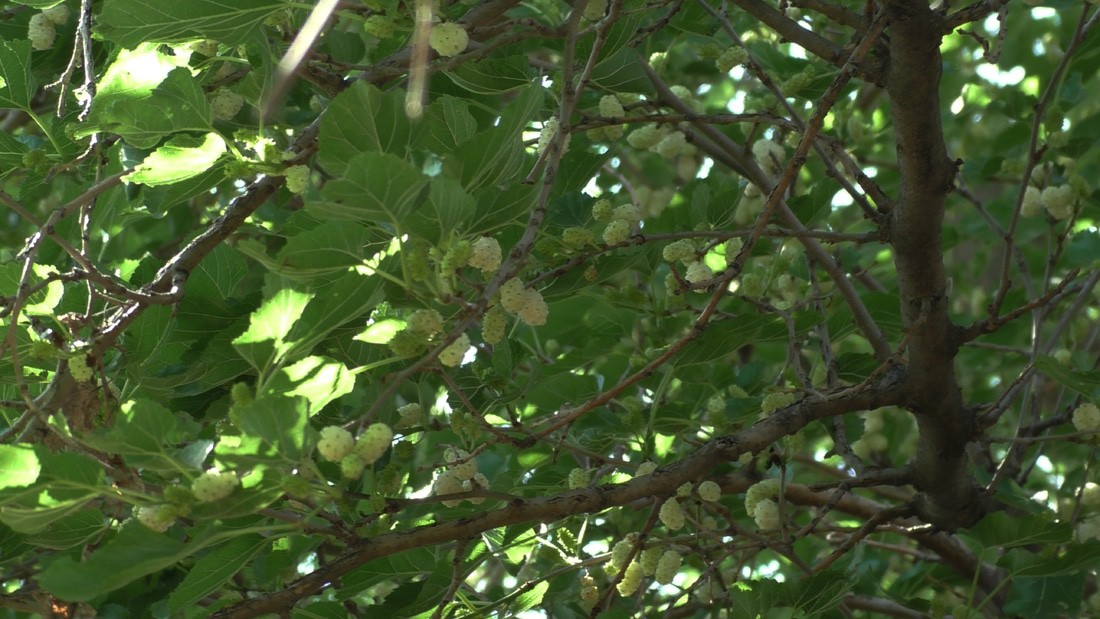 А вот тутовые деревья растут в каждом собственном доме, а в деревнях есть большие тутовые рощи. Из него много чего полезного готовят. Про нашу домашнюю водку, тутовку, я рассказывал.