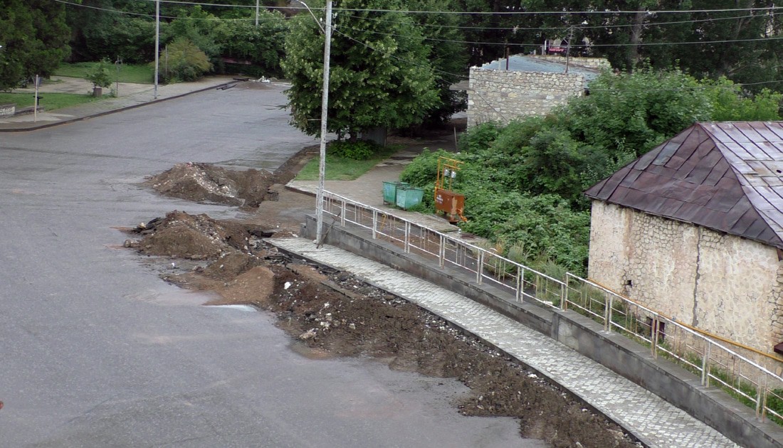 Я рассказывал, что в Шуши улицы местами покрыли новым асфальтом, но оказалось, власти как всегда, забыли провести какие-то трубы и ровная линия "окопов" прорезала улицы Шуши.
