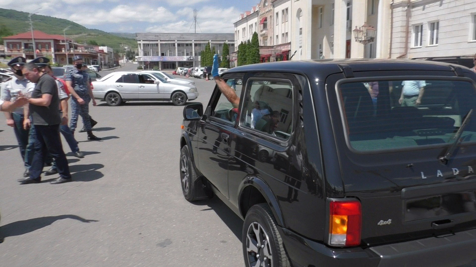 Один из получивших мой друг Лаврент, покатался с ним по Степанакерту. Новая "Нива" отличная, оборудована кондиционером и неплохо разгоняется.