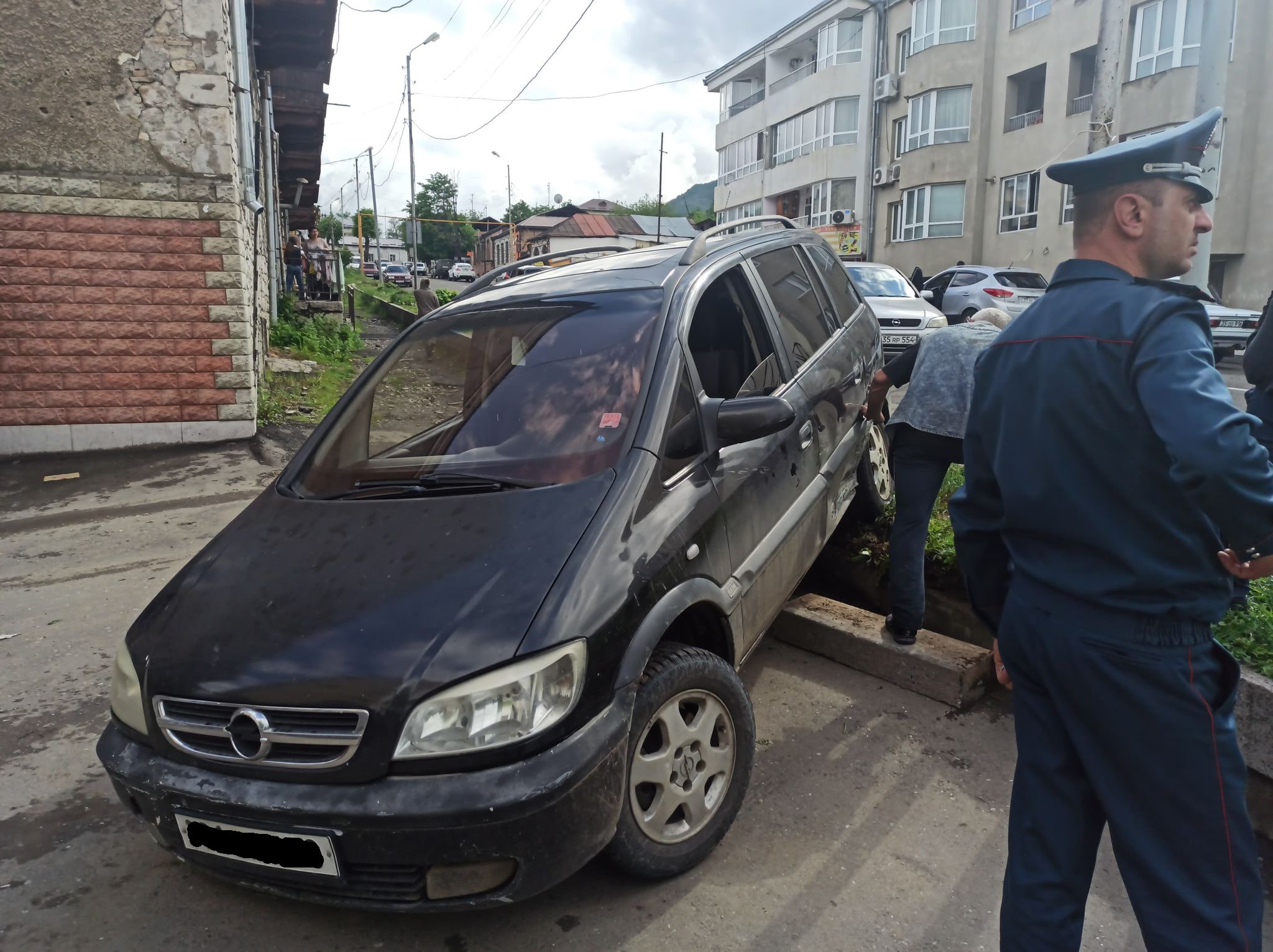 Остановился получить свою пенсию и увидел вот такую картину, машина от удара на светофоре вылетела на тротуар. За те 5 минут, что там стоял, кто-то успел и мою машину зацепить за буфер...