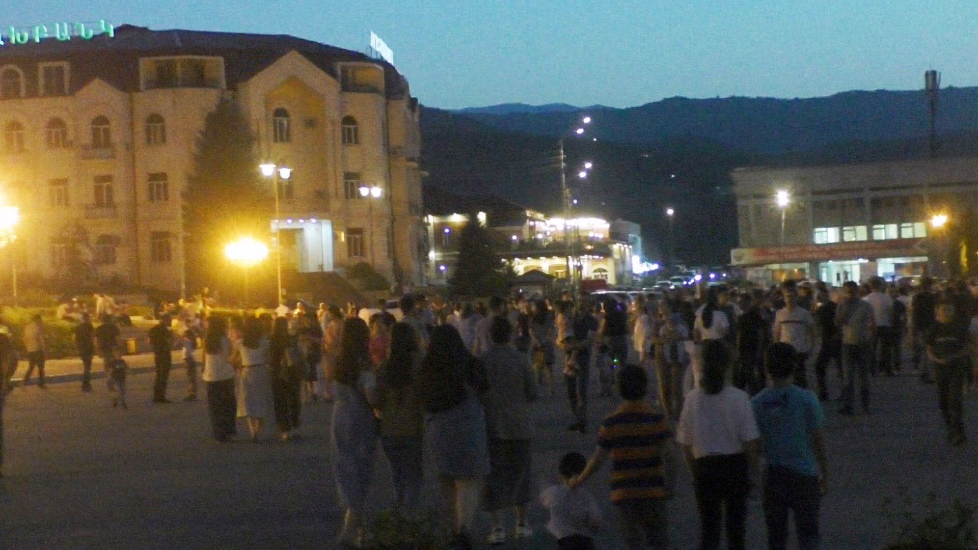 Вечером, когда летняя жара немного спала, большинство горожан с детьми вышли прогуляться. Очень многолюдно для послевоенного Степанакерта. ГАИ  перекрыло подходы к центральной площади, чтобы не создавать пробок.
