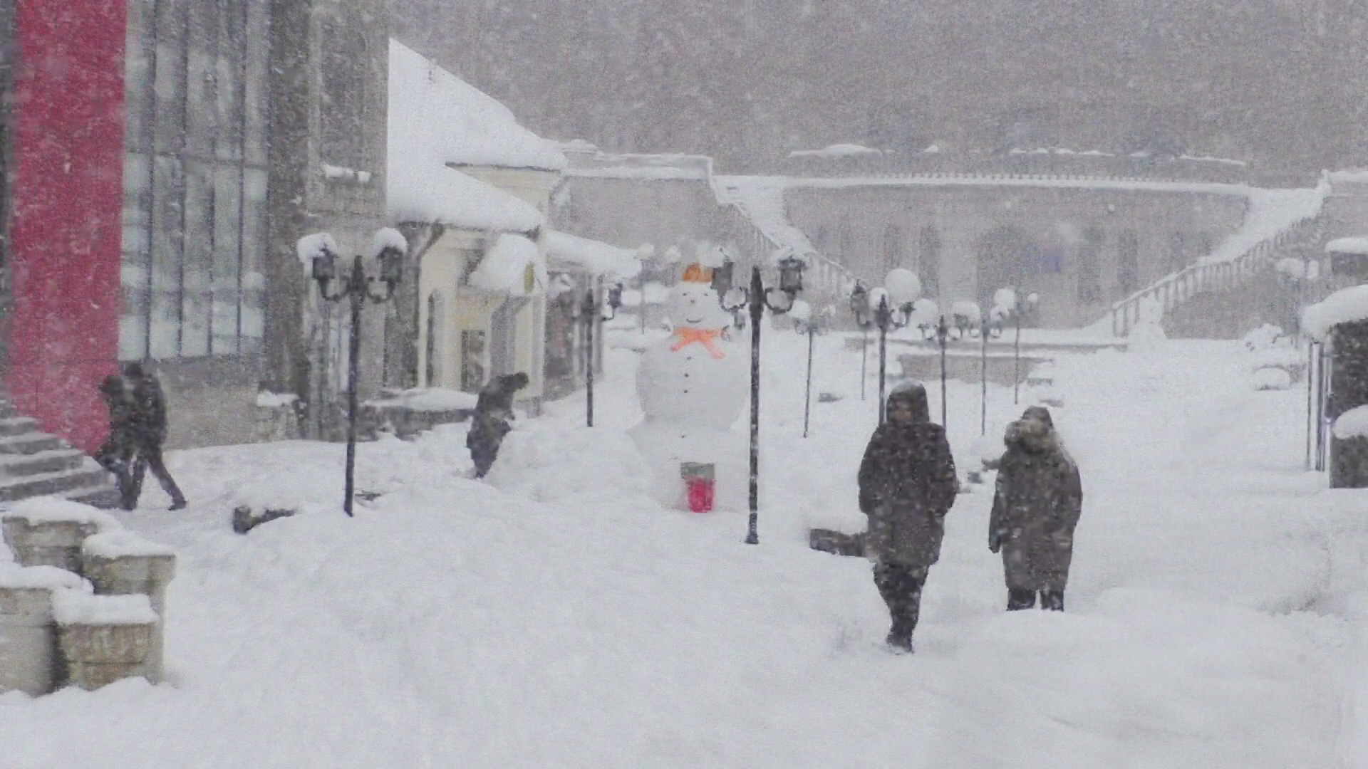 Вышел в город, в такой день лучше пешком, хоть техника усиленно очищает дороги, но снега много и машины буксуют. Маршрутки не работают, но в целом город живет своей жизнью, с появлением газа и хлебопекарни заработали.