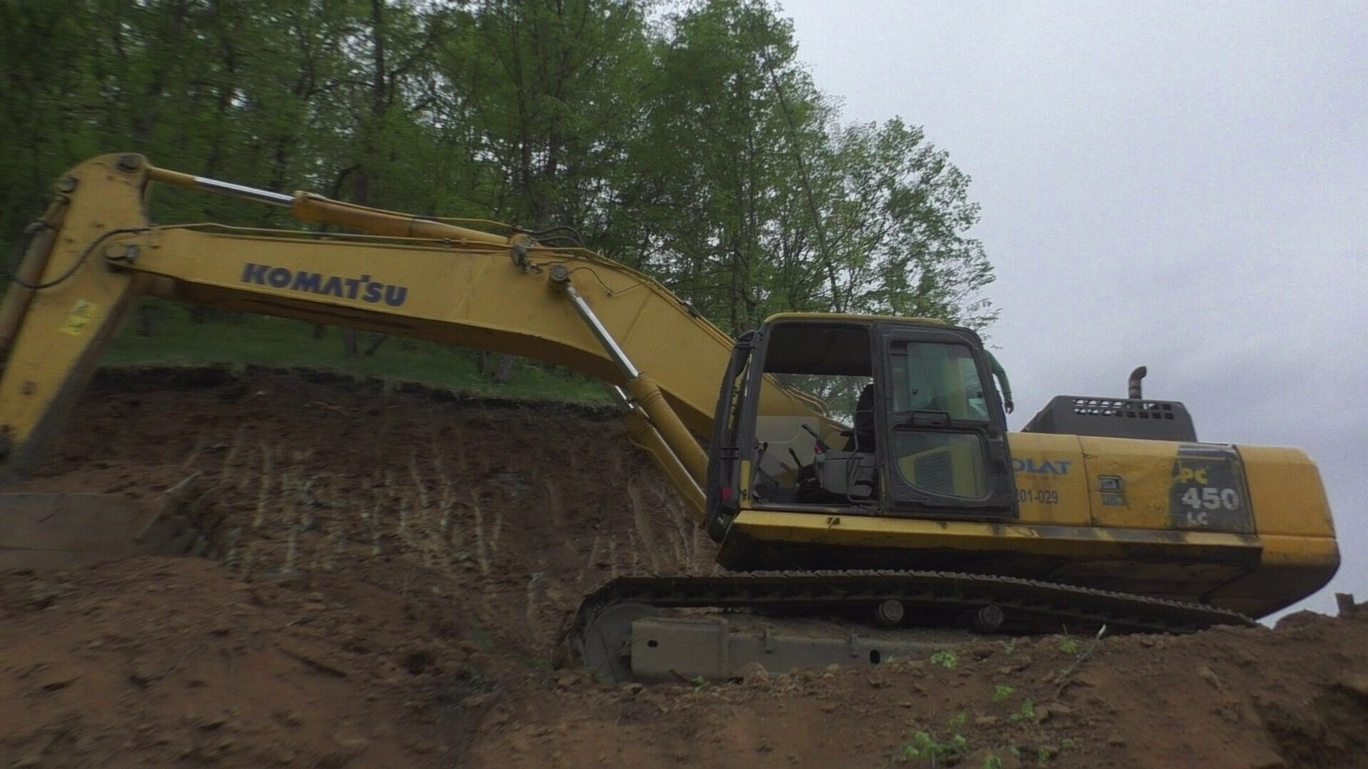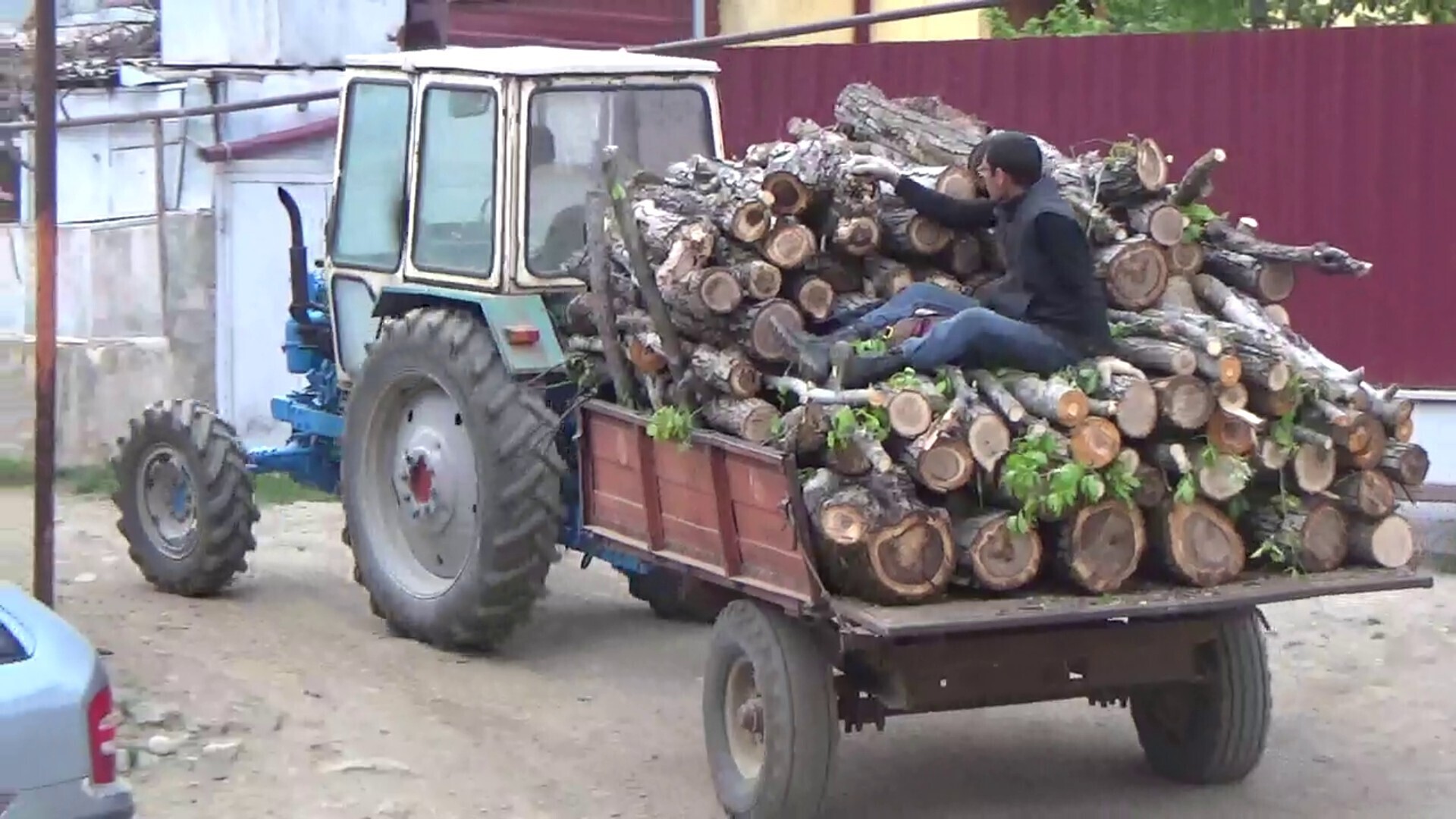 Дорогу расширяют тяжелой техникой, трубы все-равно будут искорежены, потому их и выкапывают. Лес тоже уничтожается на ширину дороги, вот сельчане и рубят обреченные деревья на дрова, не пропадать же добру.