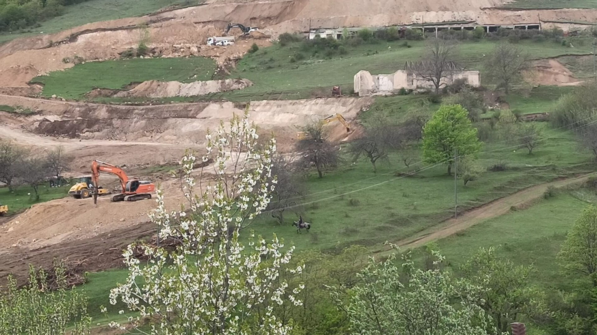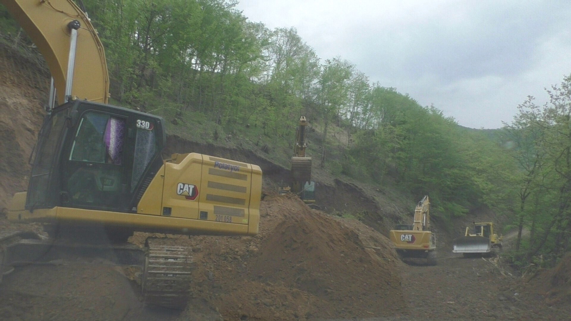 Рядом ревели экскаваторы, работы ведутся не только под селом, но и рядом, отрезки дорог потом соединятся.