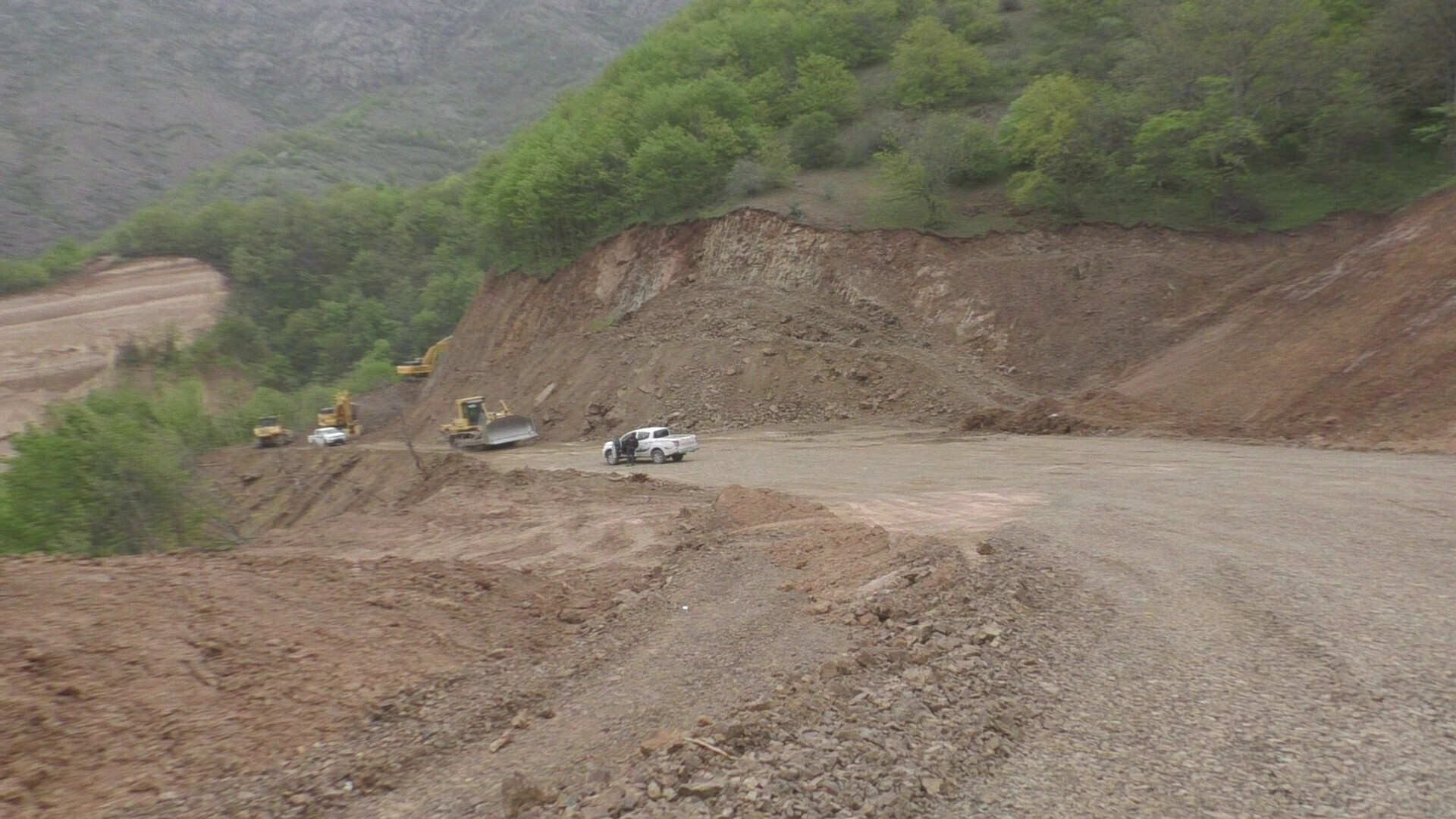 Дорога после работ не очень, острые осколки скал после взрывов запросто могут проколоть покрышки, а там связь не ловит. Дальше дорога местами обрела свой широкий контур, осталось только утрамбовать и заасфальтировать. Проехали до села без приключений.
