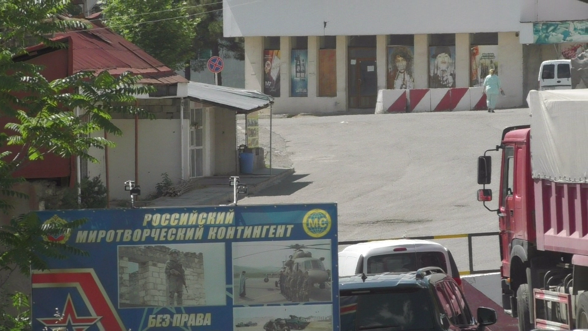 Дальше дорога была перекрыта в Лачине российскими миротворцами. Образовалась довольно большая очередь, пришлось прождать около 40 минут, пока не проедет азербайджанская колонна.