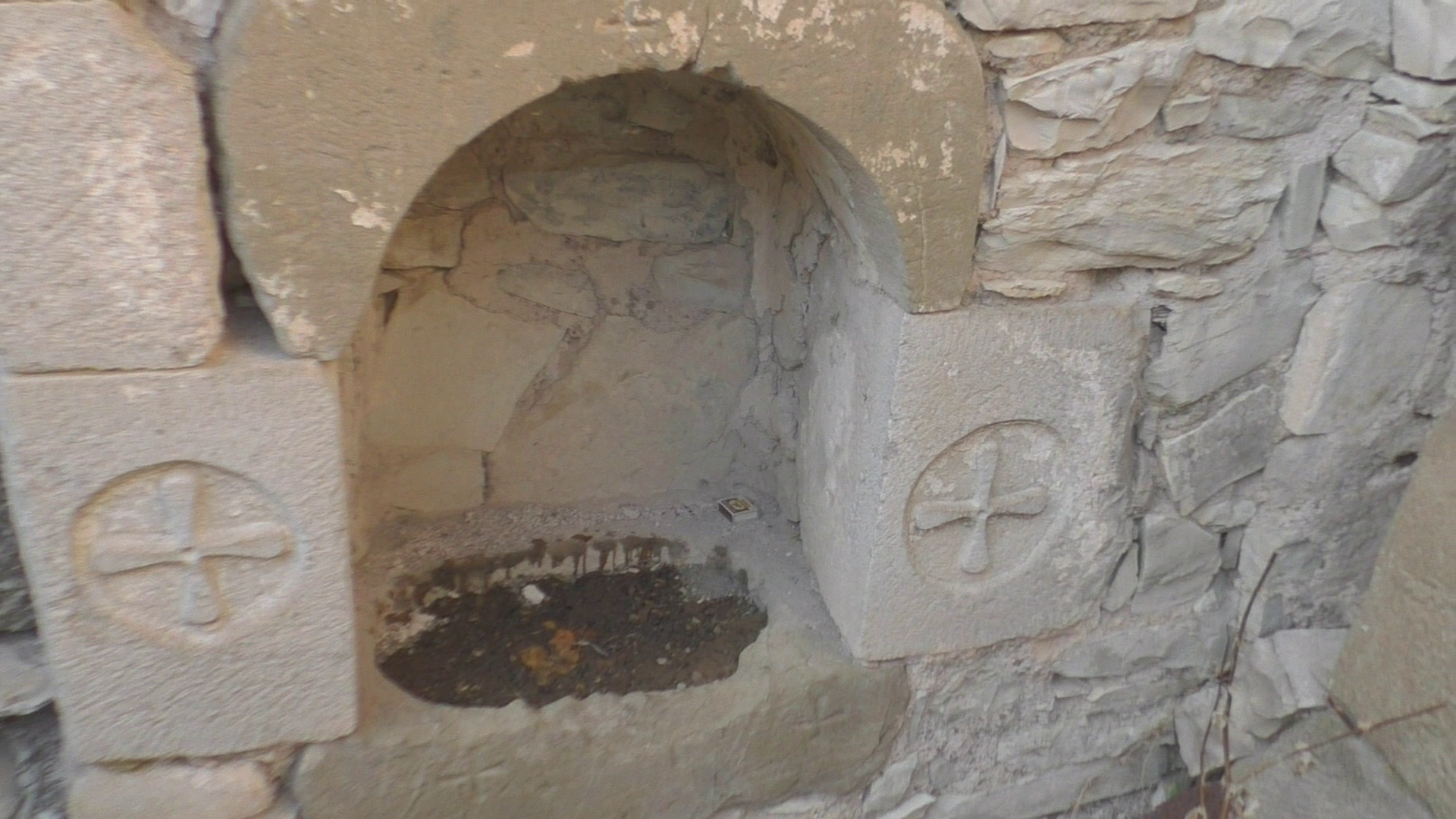 Интересен хачкар в стене, его спасти можно, любой музей украсит. Хотите узнать, как некогда шумная церковь, в которой благословлялись свадьбы, а в купели крестили детей, дошла до такого состояния? Ее умышленно разрушили...