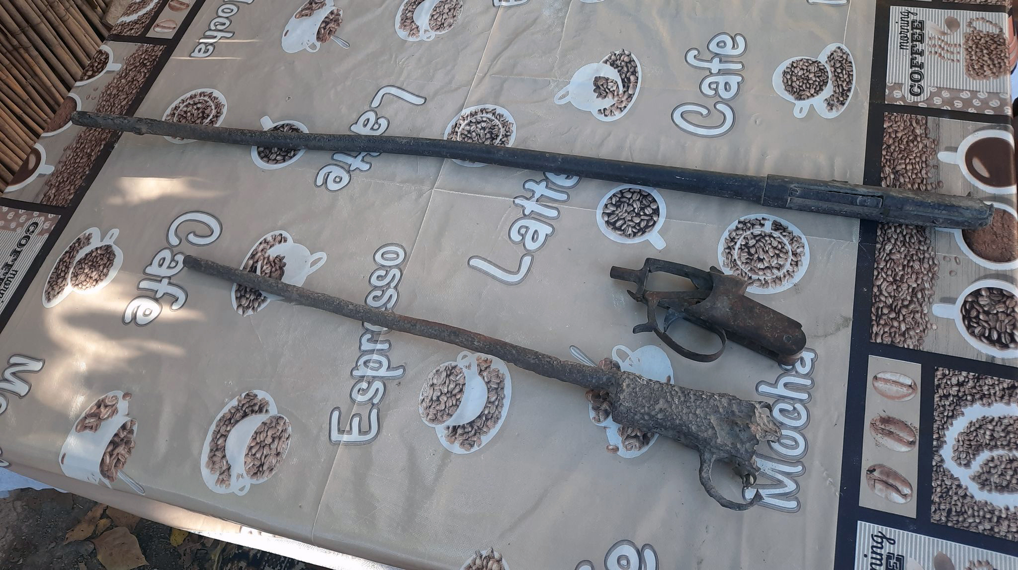 Добавлю и фото ружейных стволов из моей коллекции, у меня их два. Оба ствола ржавые, (долго лежали в земле), найдены у нас, но точно не знаю из какого села, мне их через третьи руки подарили. Деревянные детали естественно сгнили, от них даже следа не осталось.