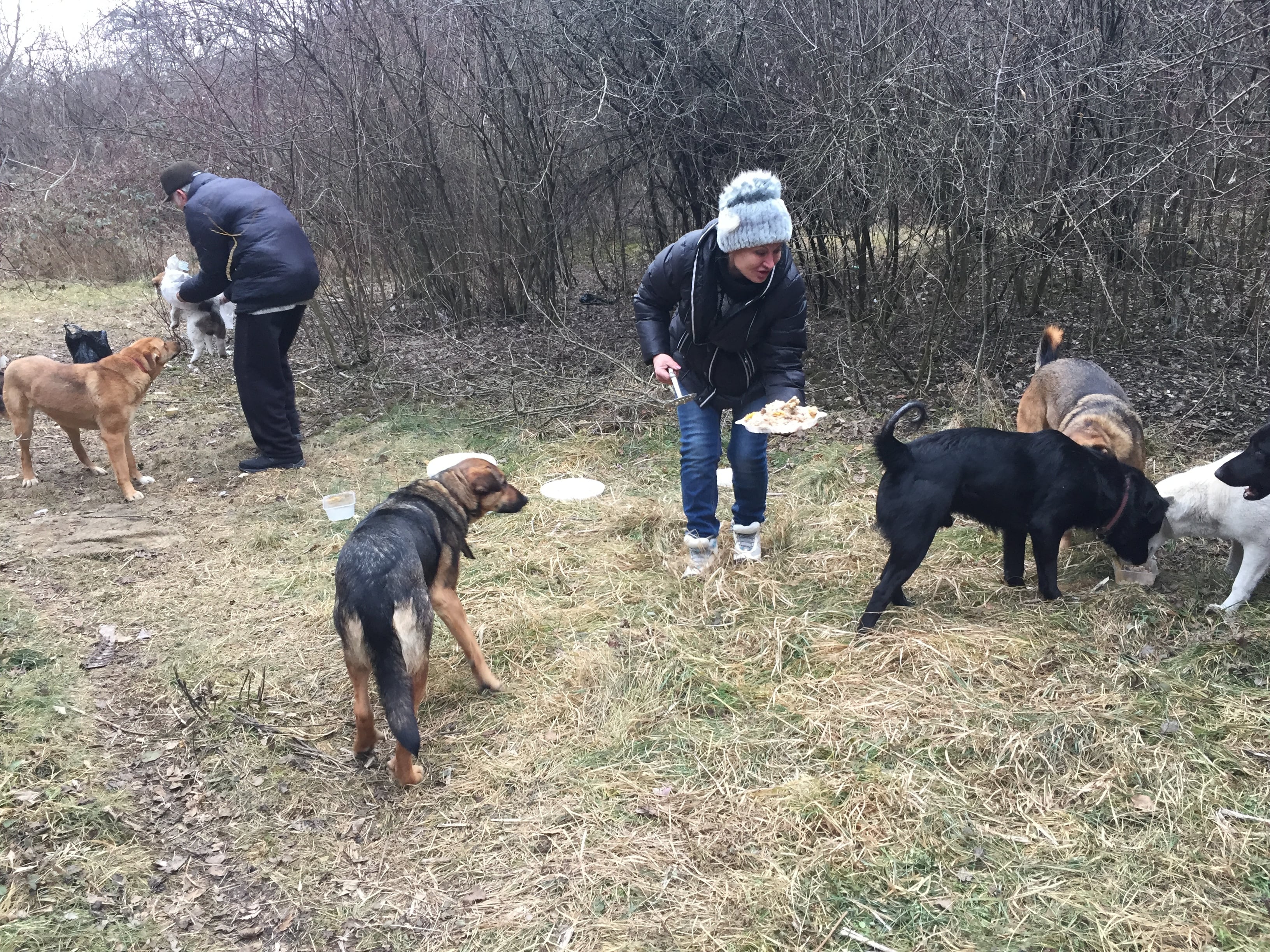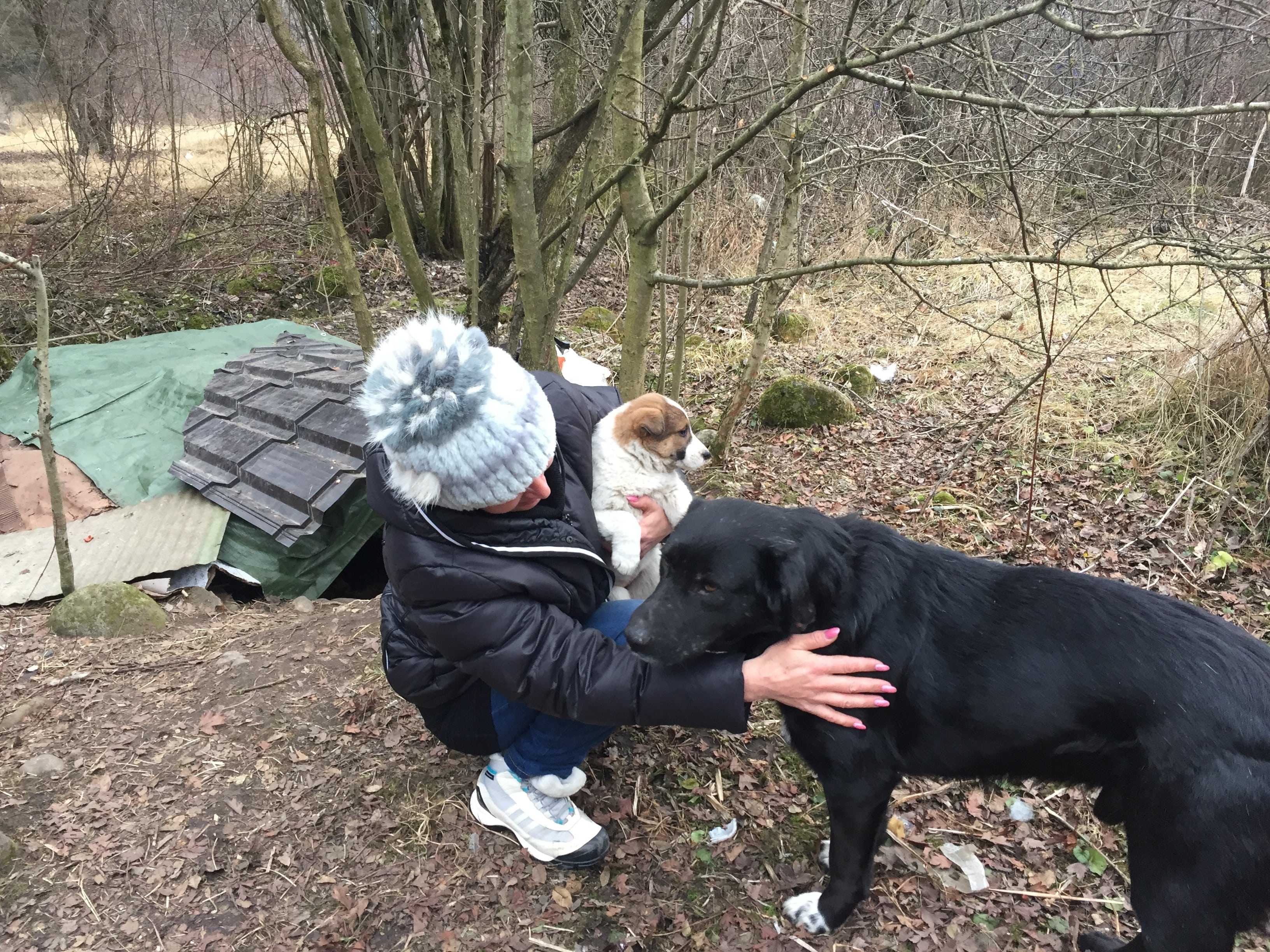 Юсуф показал мне «дикий» приют, устроенный им в парковой зоне города, в районе Долинска. Приют устроен под открытым небом. Вместо домика вырыта яма, она накрыта жестью и имеет вход. Юсуф называет яму «блиндажом». В ней живет собака с щенятами. Приют Эминова располагается в трех местах, недалеко друг от друга. Он рассказывает, что им приходится периодически менять место дислокации – собак избивают, и даже стреляют в них из травматики.