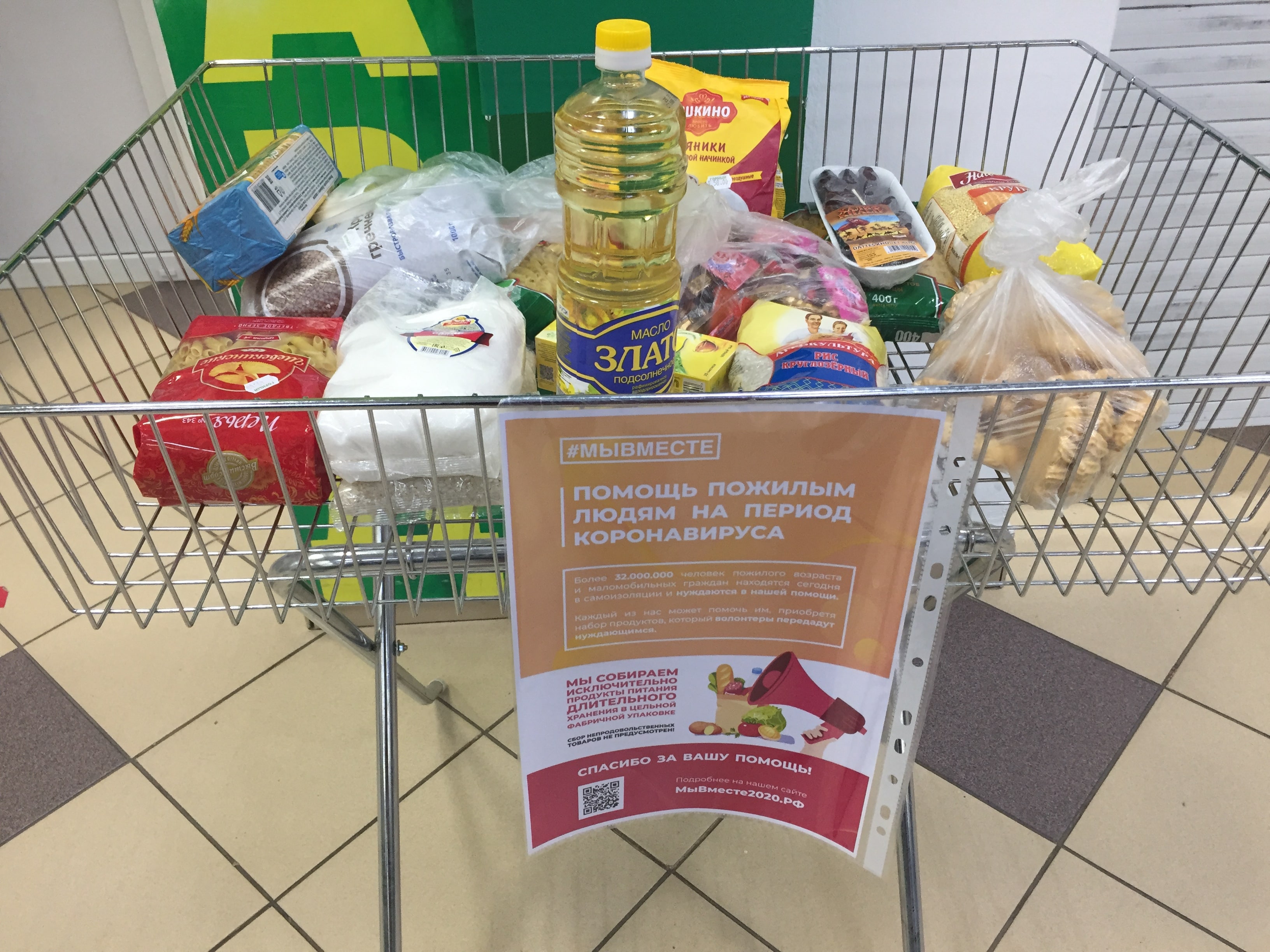 Сегодня я была в двух магазинах, где увидела такую форму оказания помощи, как «полки добра». Так, в торговом центре «Горный» установлена тележка, куда любой посетитель может купить продукты и положить в нее. Продукты могут забрать нуждающиеся, либо устроители акции «Мывместе» для последующей раздачи бедным.
