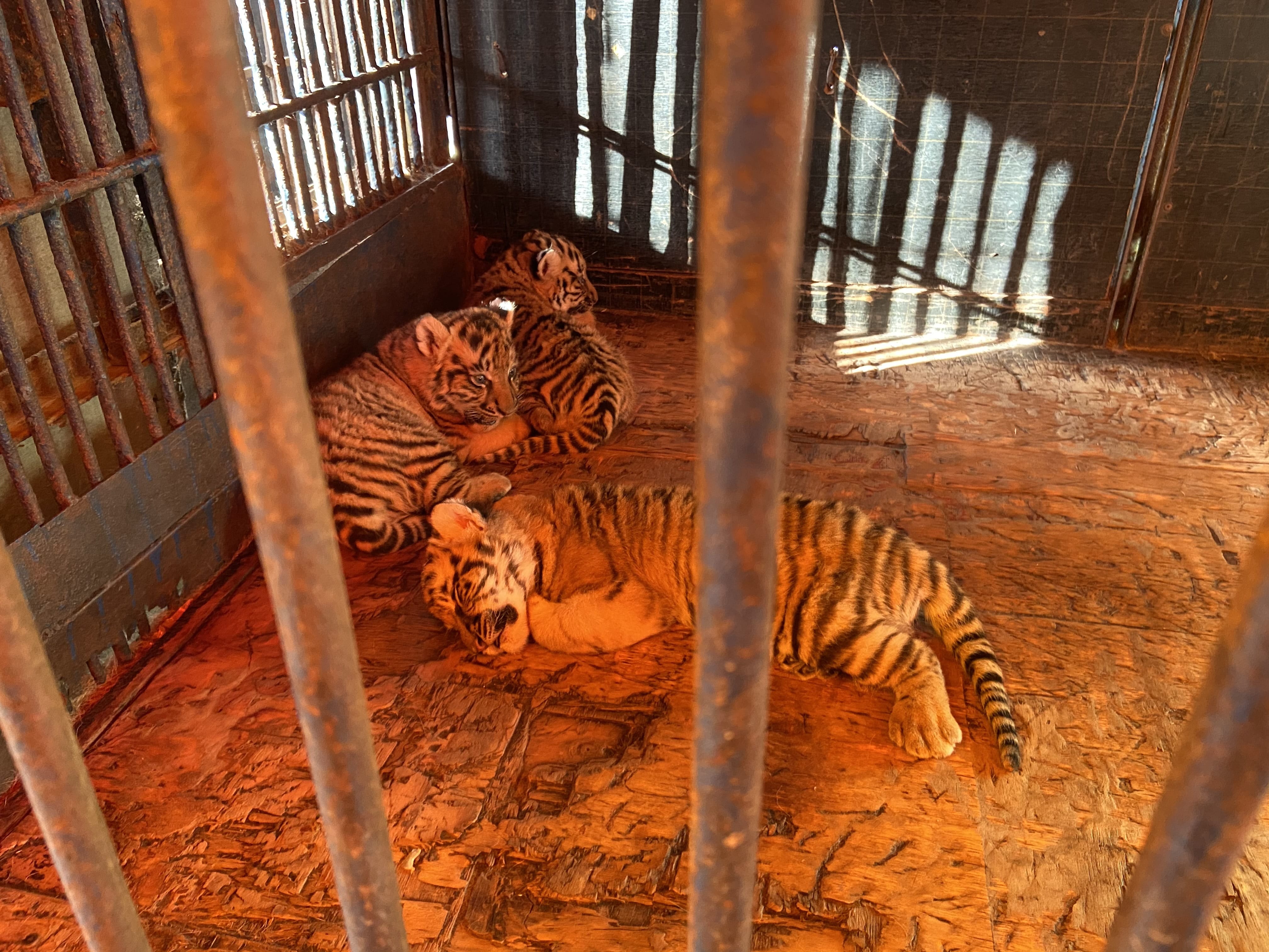 Пока шапито стоит в Нальчике, в тигровом семействе произошло прибавление - у двух бенгальских тигриц родились детеныши – семеро тигрят, а кормящим тигрицам, Лоле и ее маме Амуре ежедневно требуется по восемь килограмм свежего мяса – четыре утром и четыре вечером. Остальным тиграм - по семь килограммов еды.
