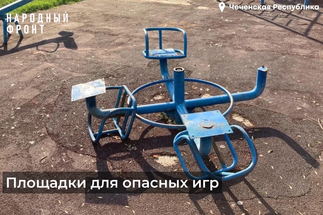 Накануне региональное отделение ОНФ провели проверку состояния детских площадок в Грозном, Гудермесе, Шали и Аргуне.  Везде, где побывали общественники, они обнаружили разбитые конструкции на детских площадках во дворах многоквартирных домов.  Общественники передали фотографии и адреса, где они побывали местным властям, но надо было в прокуратуру.