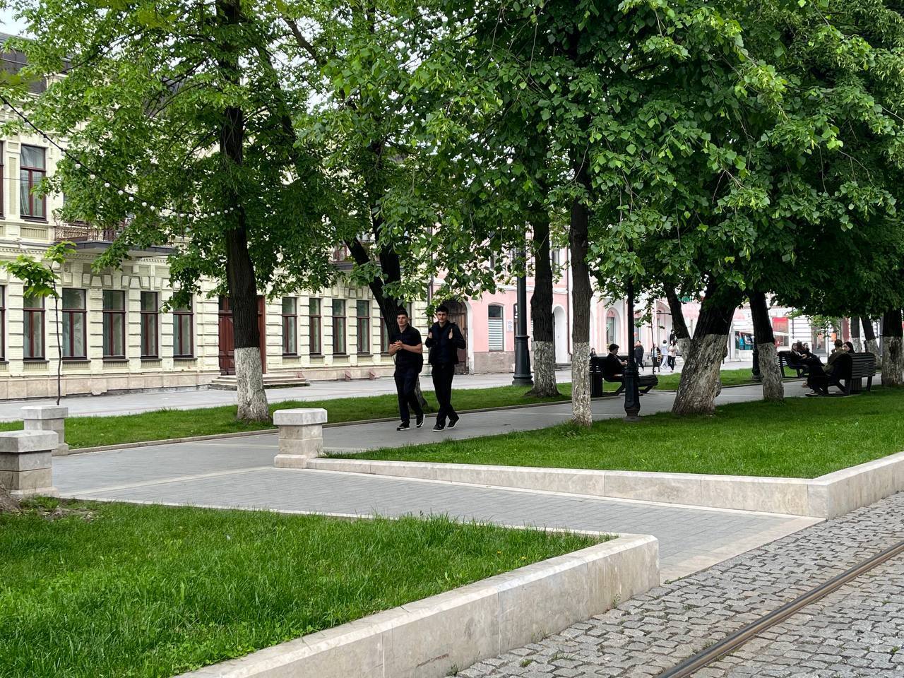 Это главная пешеходная улица во Владикавказе - проспект Мира. Не могу вспомнить, когда тут не было цветов, но сейчас их нет.