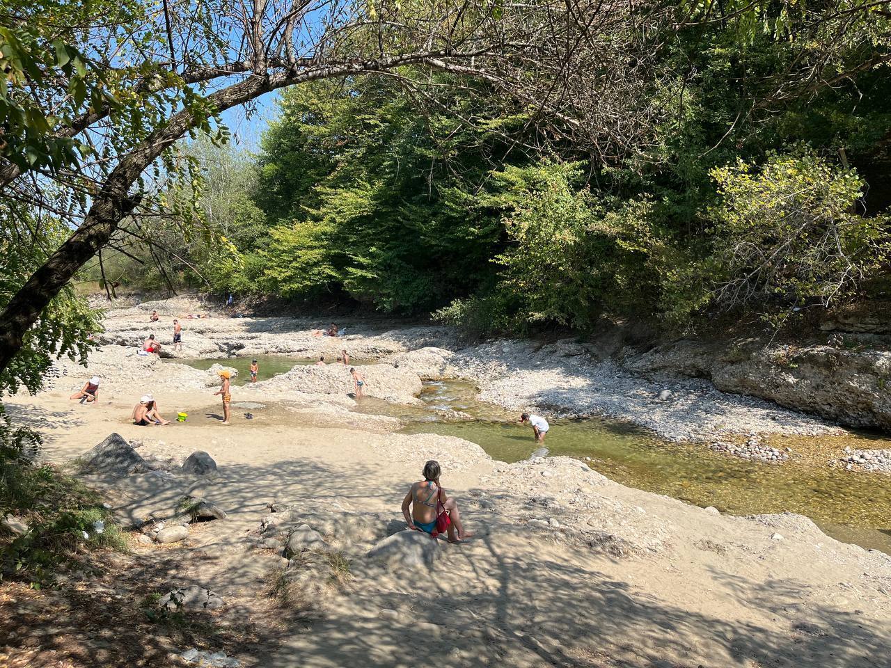 Переместилась в парк, мне он в Нальчике очень нравится, потому что это больше лесопарк такой. Главный парк во Владикавказе можно объехать на велосипеде, наверное, минут за 15 вдоль и поперек. А в Нальчике, наверное, пол дня можно по парку кататься. Впервые добрела до речушек и купальщиков: