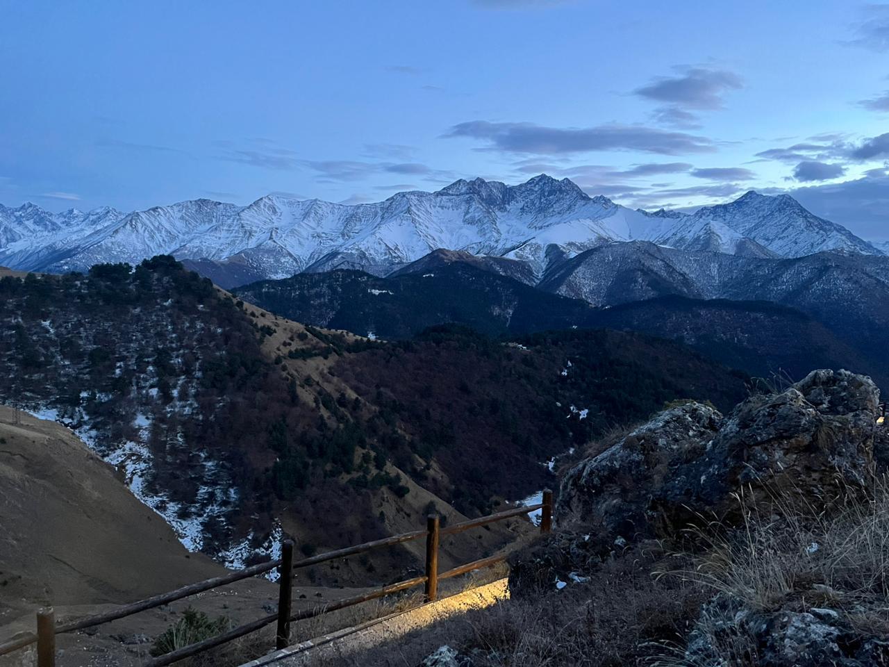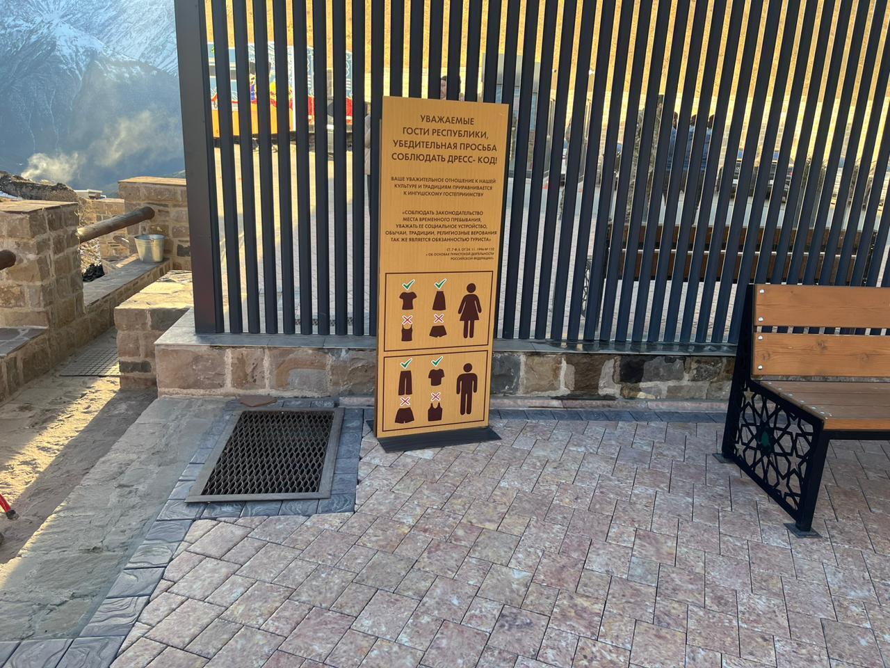 Тут есть смотровая площадка, кафе и скоро будет гостиница. У кафе отзывы были не самые лучшие, поэтому я не ожидала многого, но повезло - еду принесли быстро, а обслуживание было очень приятным. Заказала ингушский национальный суп, названия уже не вспомню, оказалось, что это обычный суп из картошки и мяса, такой же суп у осетин тоже почему-то выдаётся на национальную особенность и называется лывза. Цены тут чуточку выше обычного, но учитывая, что других кафе рядом нет, а вид тут прекрасный - совсем не дорого.