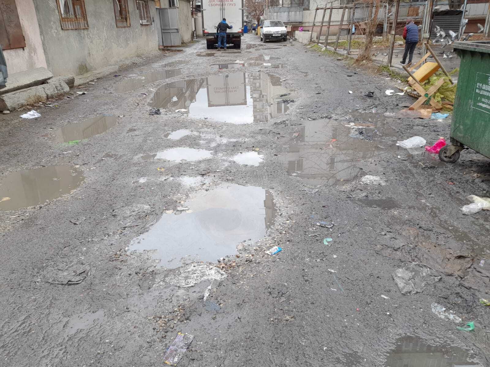 «Скажите, пожалуйста, куда можно обратиться, чтобы асфальт наконец привели в порядок во дворах? Невозможно каждый день проезжать через эти ямы. Участок от ресторана «Империя» и до улицы Чернышевского 201 Б.  А также большая просьба выделить тротуары для пешеходов. Посмотрите через какую грязь приходится ходить».